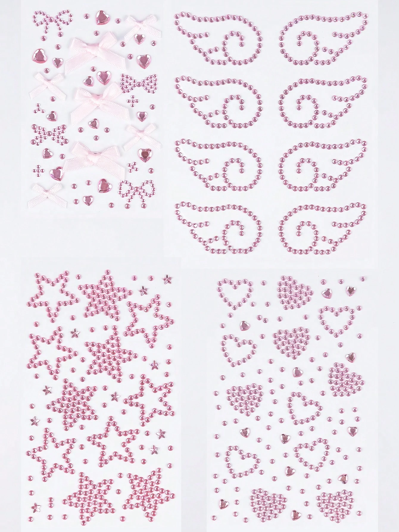 Kawaii 1 pieza Pegatinas de encaje con lazo, corazón, estrella, lazo, brillo de diamante y joya facial
