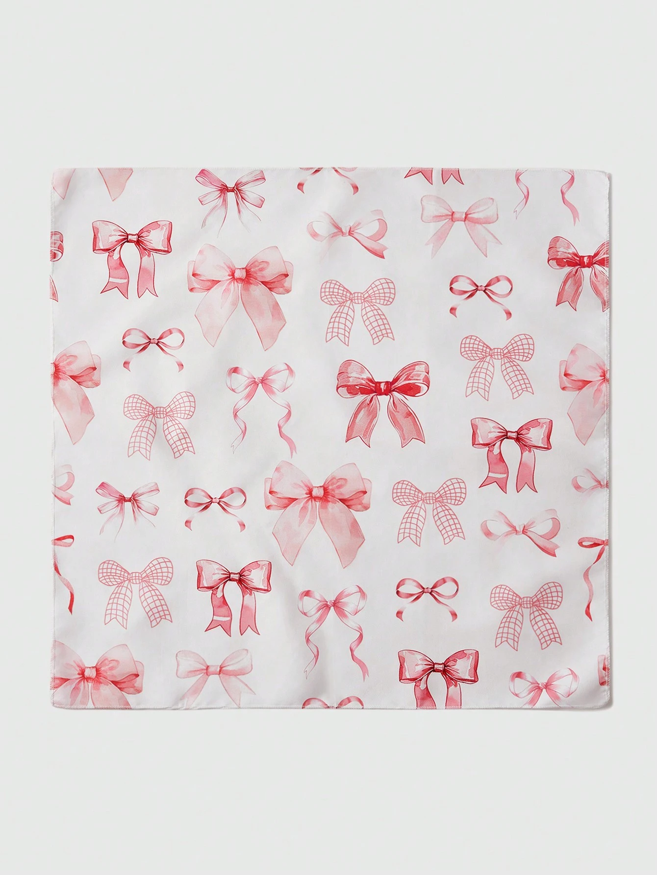 Kawaii 1 pieza Pañuelo con estampado de lazo adorable, pañuelo cuadrado de cabeza con estampado de mariposa rosa, versátil para uso diario (Patrón No. 1203407) Día de San Valentín