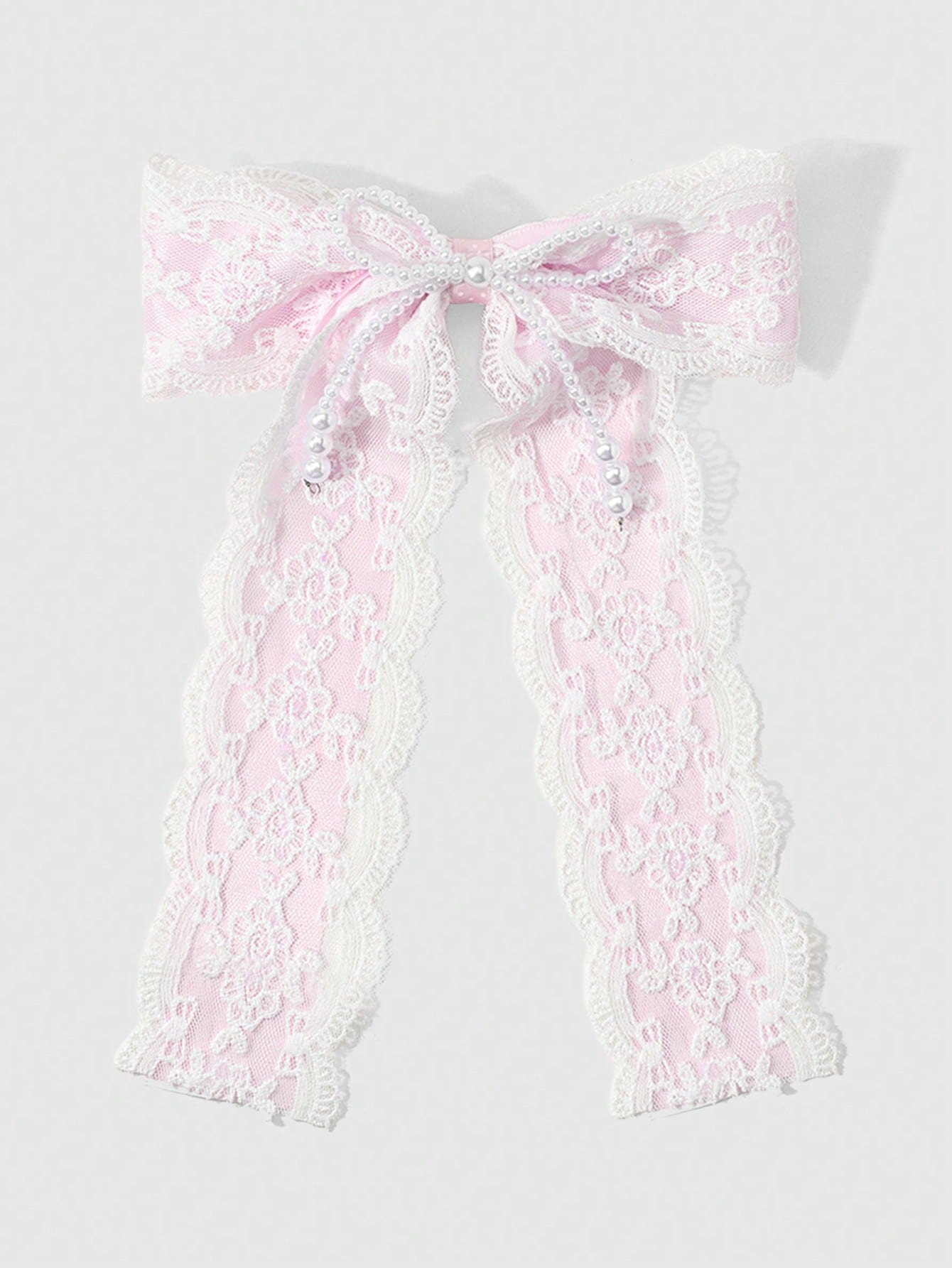 Kawaii 1 pieza Clip de pelo minimalista y elegante con lazo de malla brillante color champán y perla falsa, adecuado para uso diario de mujeres y niñas, regalo para fiestas