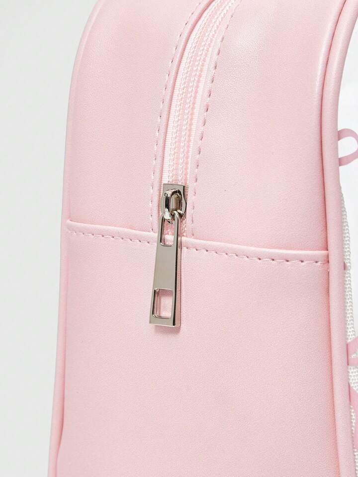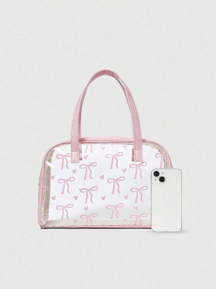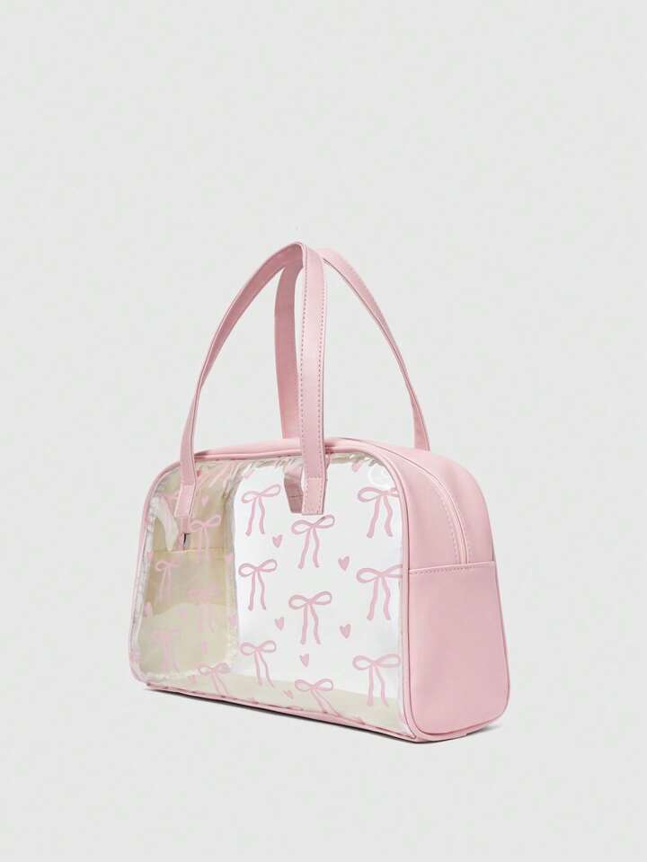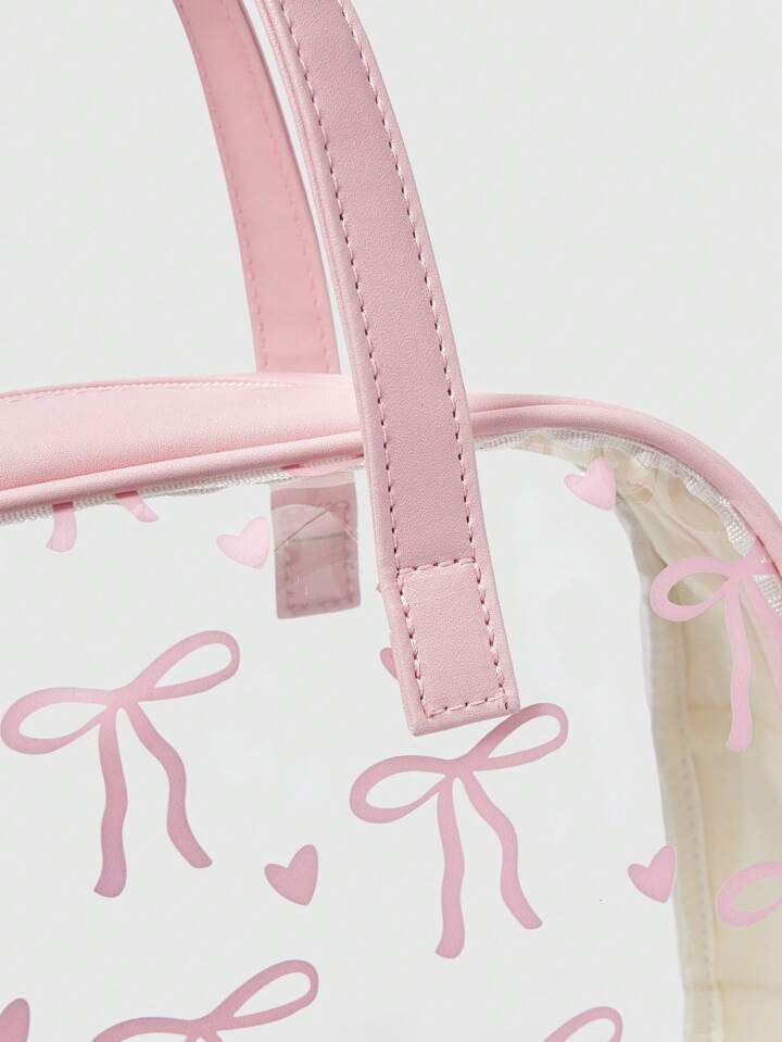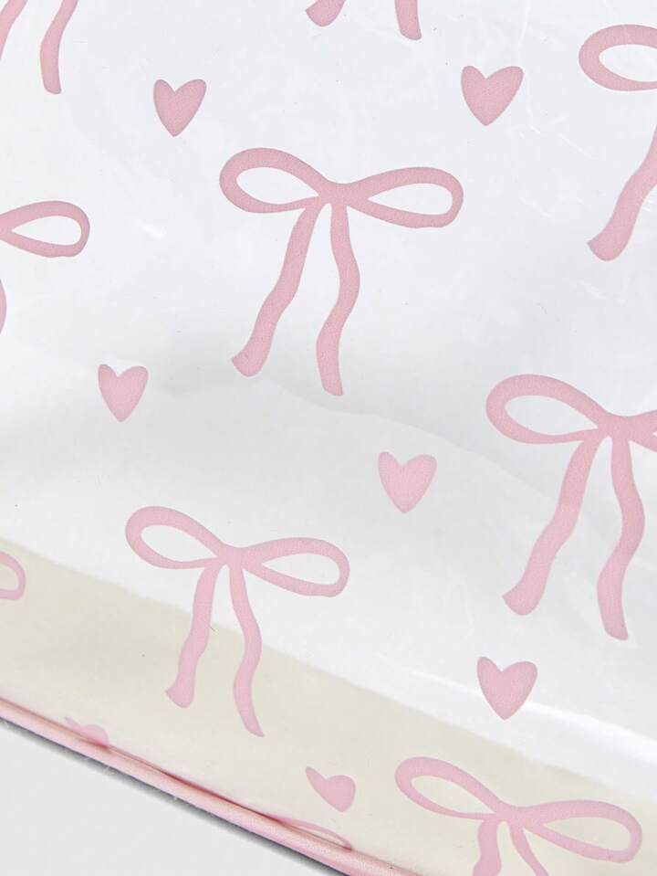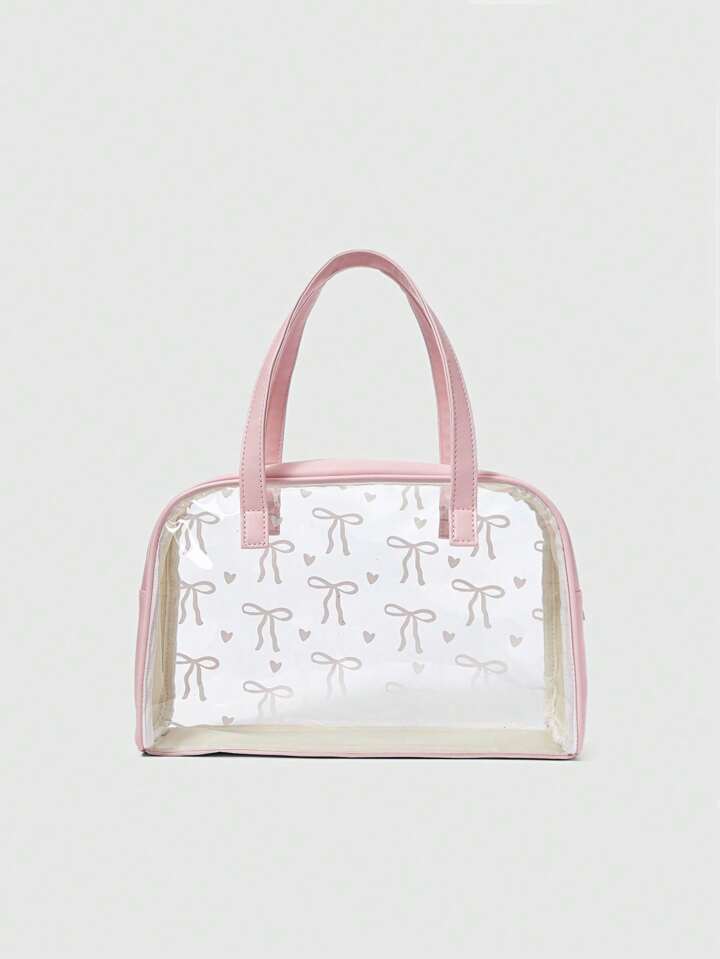 Kawaii 1 pieza Bolso organizador de cosméticos transparente con estampado de mariposa rosa, bolsa de almacenamiento de maquillaje portátil de gran capacidad, adecuado para viajes, playa, resort