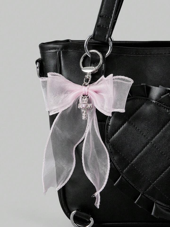 Kawaii 1 pieza Llavero con colgante de bolso con lazo de encaje rosa y perla