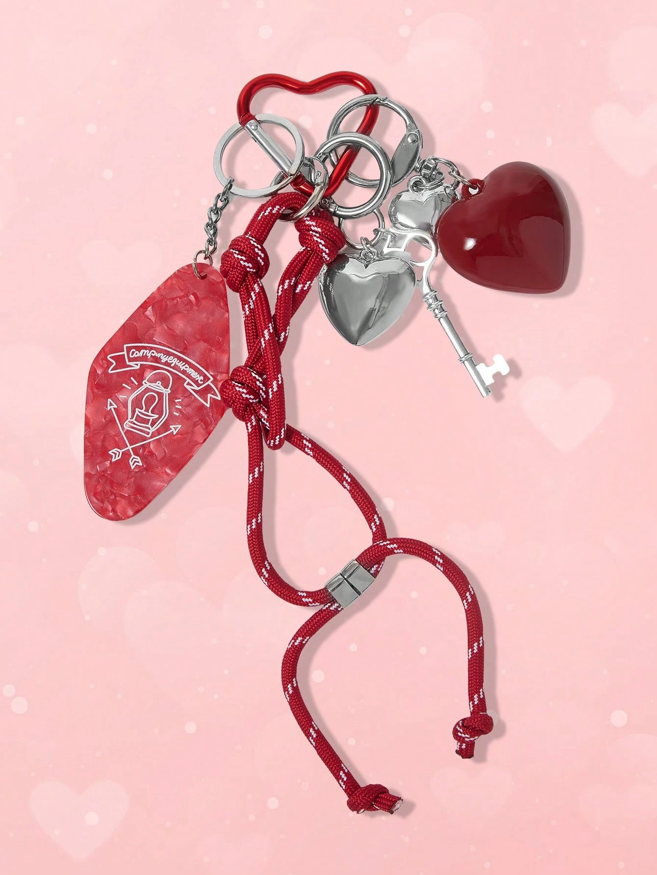 Kawaii 1 pieza Llavero/Accesorio de bolso con forma de corazón de cereza roja trenzado, para el Día de San Valentín