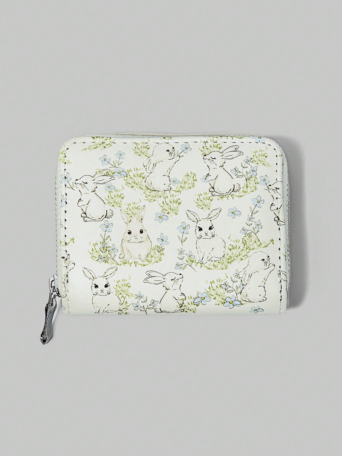 Kawaii 1 pieza Monedero con cierre con cremallera con estampado de conejo floral de primavera/verano, cartera minimalista para mujer apta para el Día de San Valentín