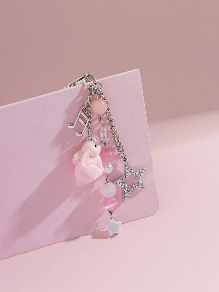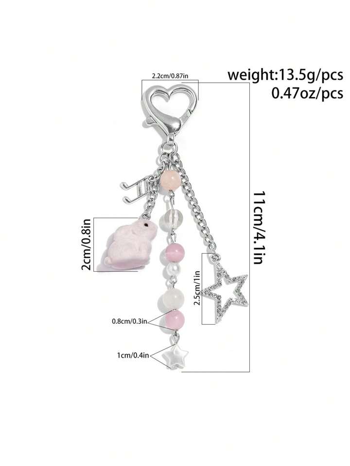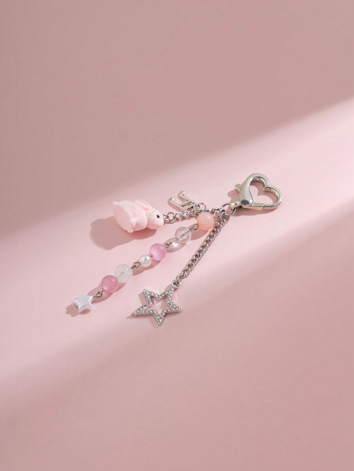 Kawaii 1 pieza Llavero con colgante de conejito, estrella, cristal y borlas con un estilo dulce y adorable, un gran regalo para Pascua o San Valentín para amigos