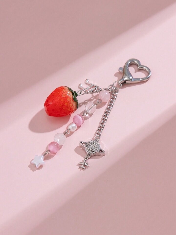 Kawaii 1 Pieza Llavero Colgante De Borla De Cristal Con Diseño Dulce Y Encantador Con Fresa Y Planeta