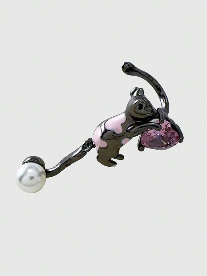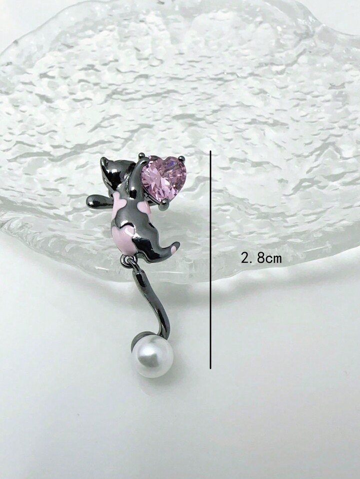 Kawaii 1 pieza Clip dulce & guay estilo rosado con diamante de imitación gato & en forma de corazón oreja