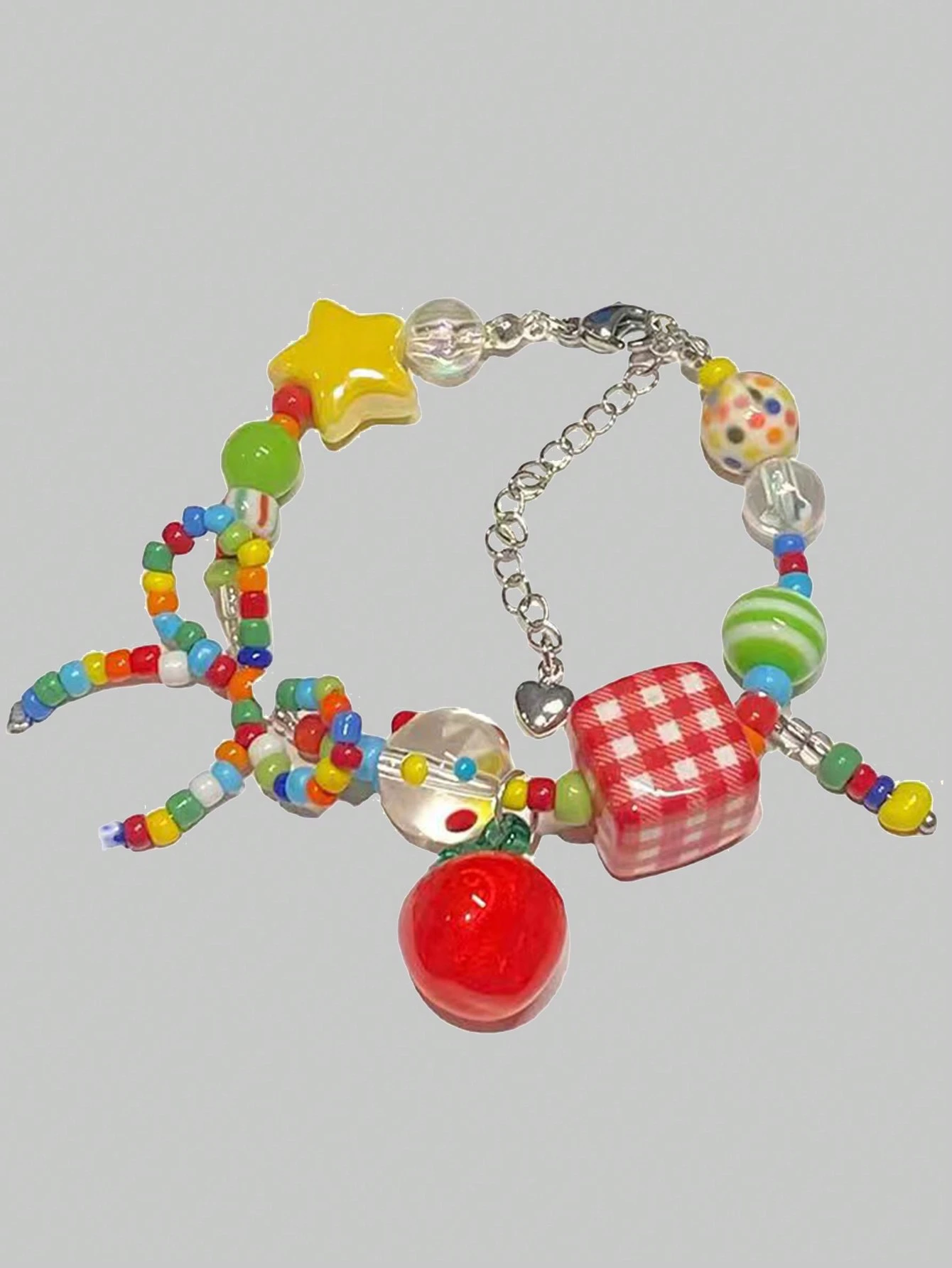 Kawaii 1 pieza Pulsera de mujer dulce con cuentas de manzana y estrella de colores de dopamina