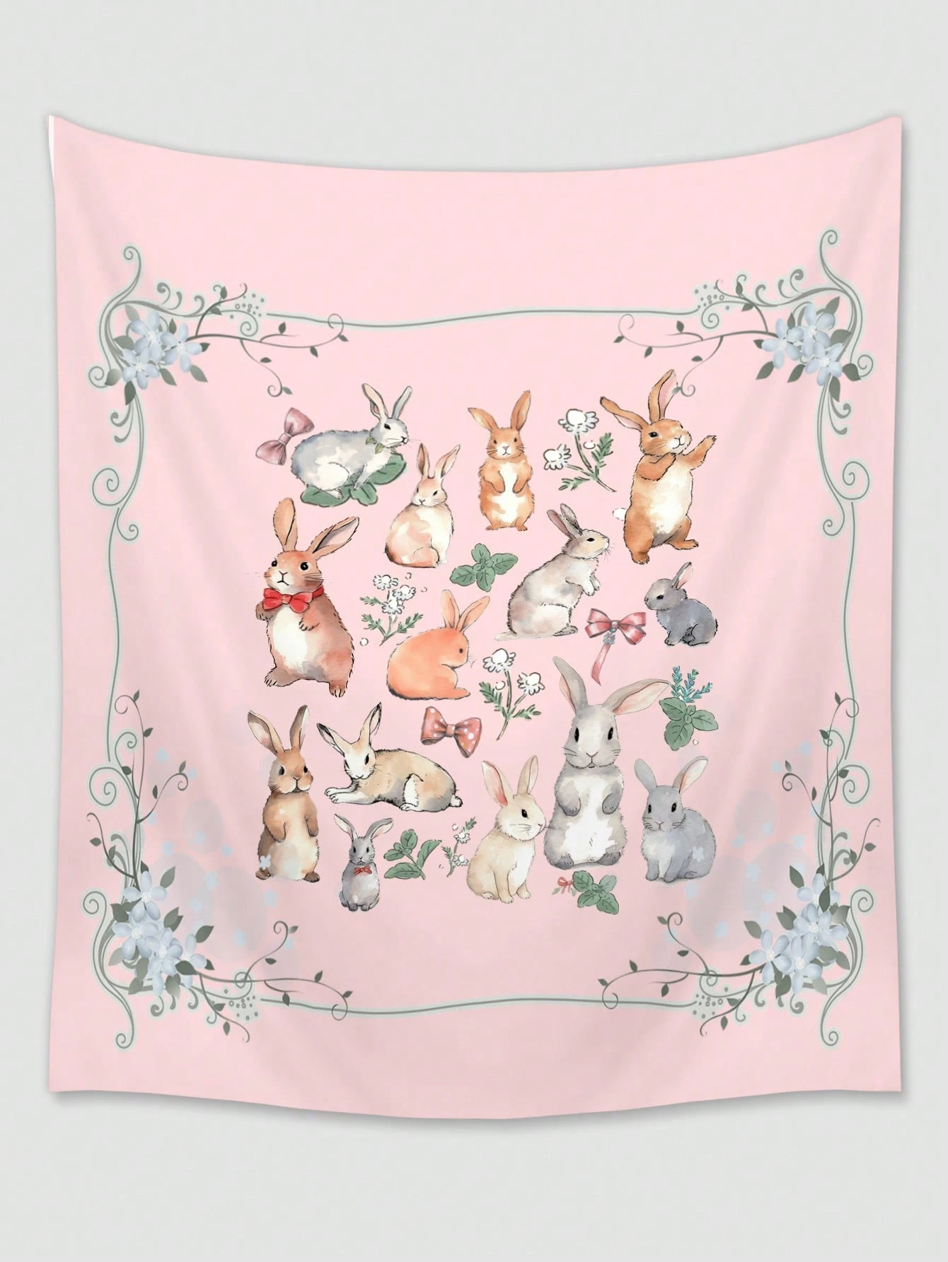 Kawaii 1 pieza Tapiz de pared de poliéster con patrón de conejo lindo en acuarela, adecuado para la decoración de la pared de la sala de estar, el dormitorio, el camping, todo el año
