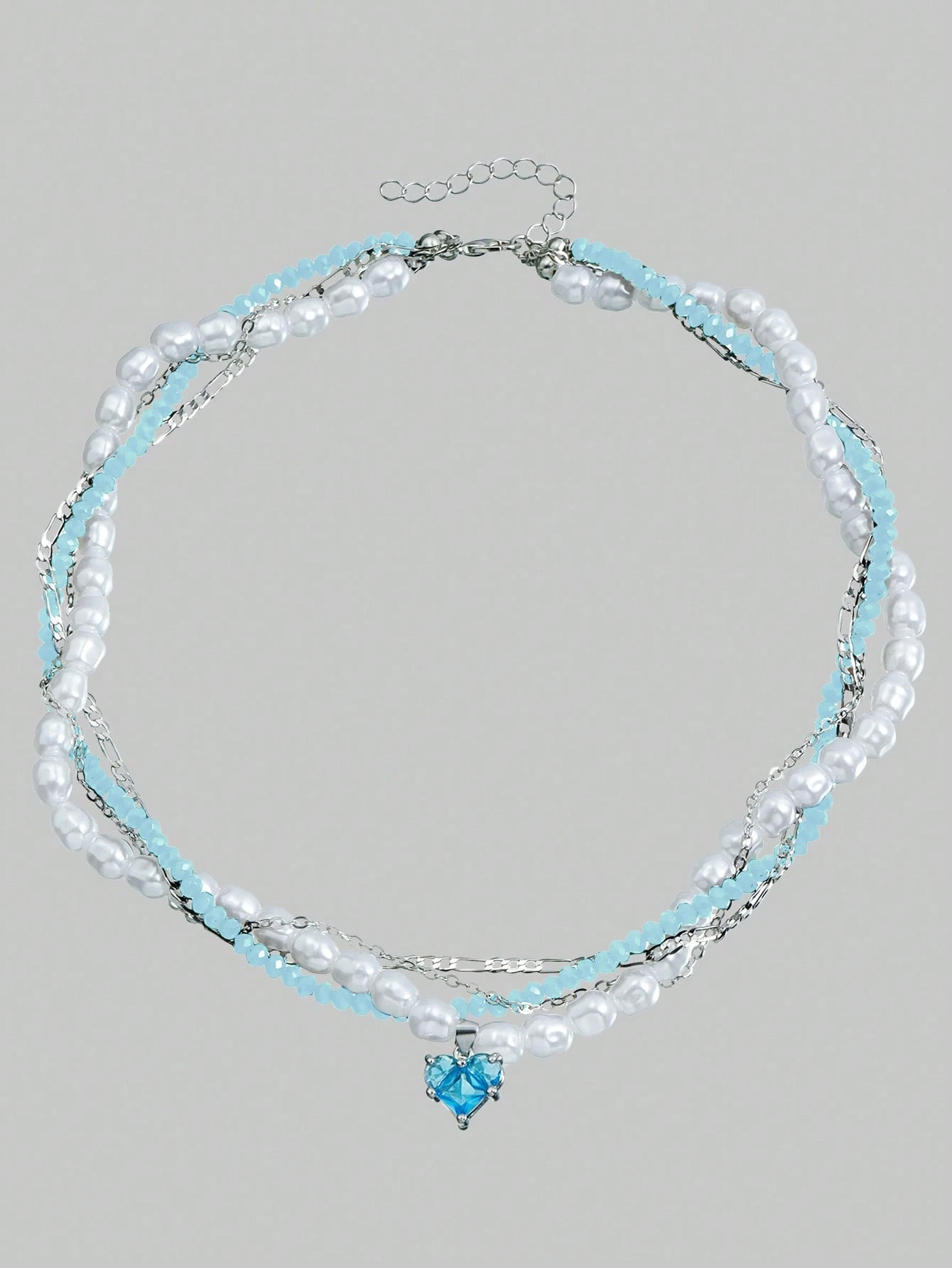 Kawaii 1 pieza Collar con colgante de corazón de mujer con perla, cristal y circonita