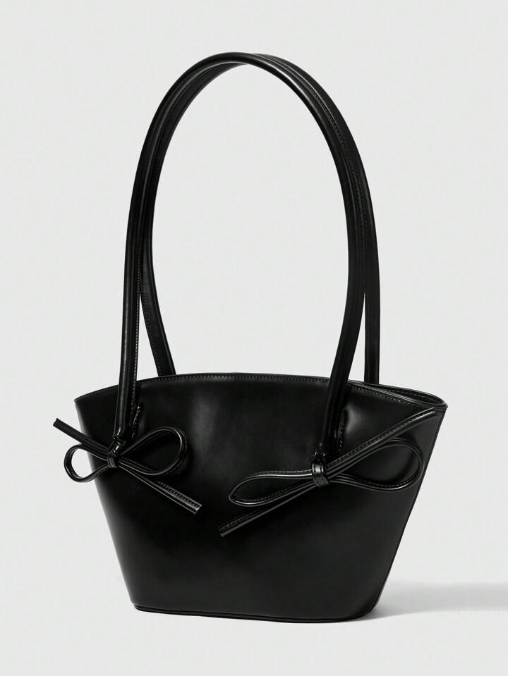 Kawaii 1 pieza Bolso de hombro casual simple de color liso con decoración de lazo para mujer