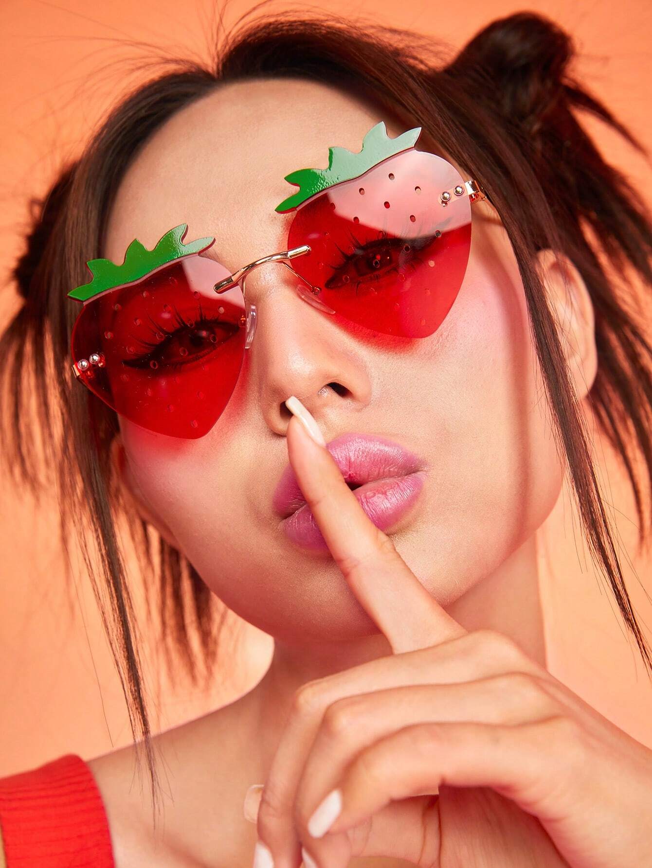 Kawaii Mujer 1 pieza Gafas de moda sin marco fresa diseño