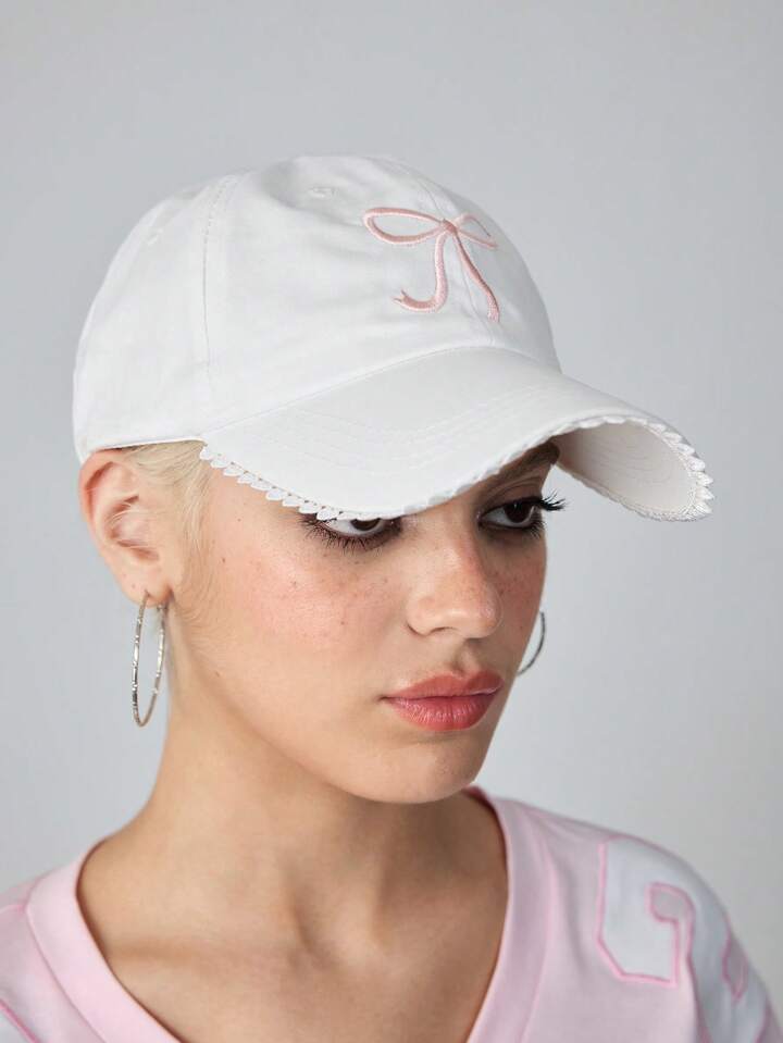 Kawaii 1 pieza Gorra de béisbol con lazo y ribete de encaje para mujer, adecuada para uso diario