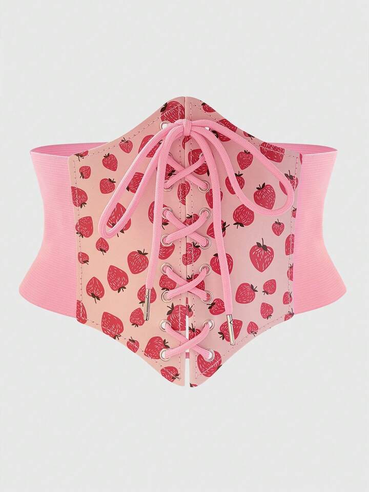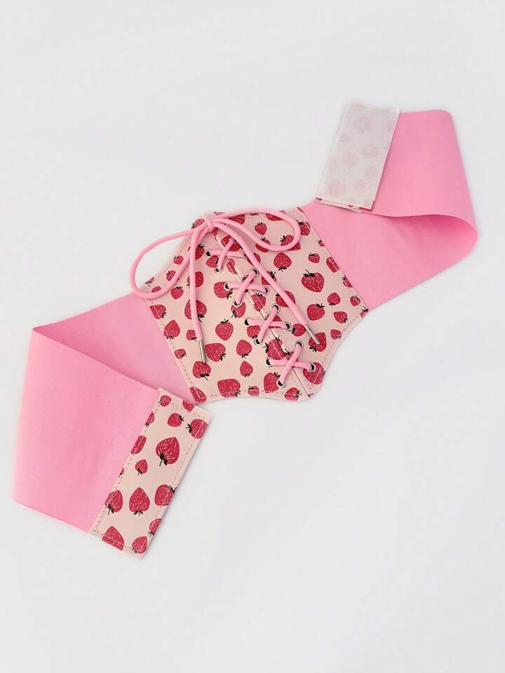 Kawaii 1 pieza Cinturón elástico con nudo y hebilla con estampado de fresa rosa para mujer, ciñe la cintura, accesorio versátil para uso diario