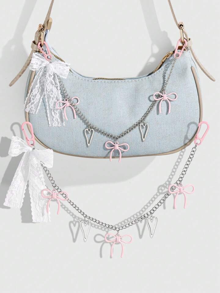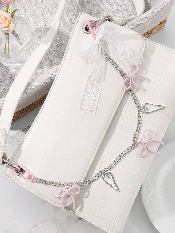 Kawaii 1 pieza Llavero con colgante en forma de corazón y estrella, con lazo acrílico, con adornos de encaje negro y rosa en estilo gótico elegante y lujoso del Y2K, adecuado para mujeres y niñas, regalo perfecto