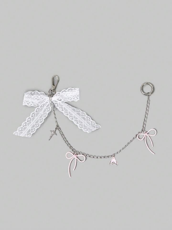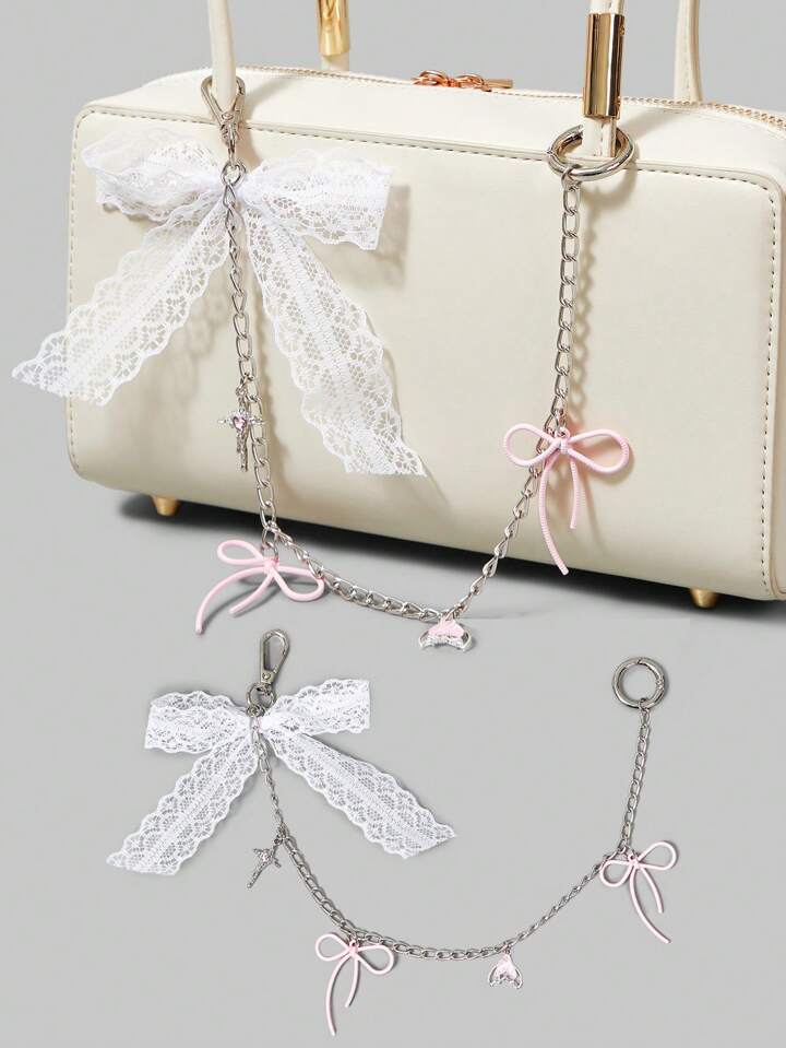 Kawaii 1 pieza Accesorio colgante de bolso con dije acrílico en forma de cola de pez, cruz y lazo rosa con estilo Y2K