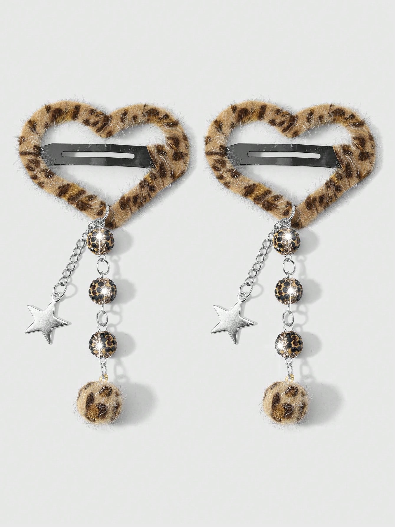 Kawaii 2 nuevos pasadores de cabello de arcilla suave con diamante, bola, estrella y cadena, estilo retro y personalizado, con estampado de leopardo y animal, ideal para uso diario de hermanas/novias, regalo para fiestas