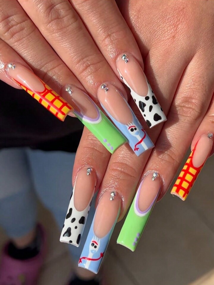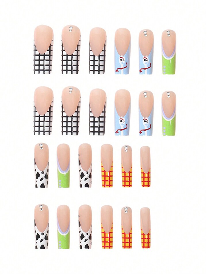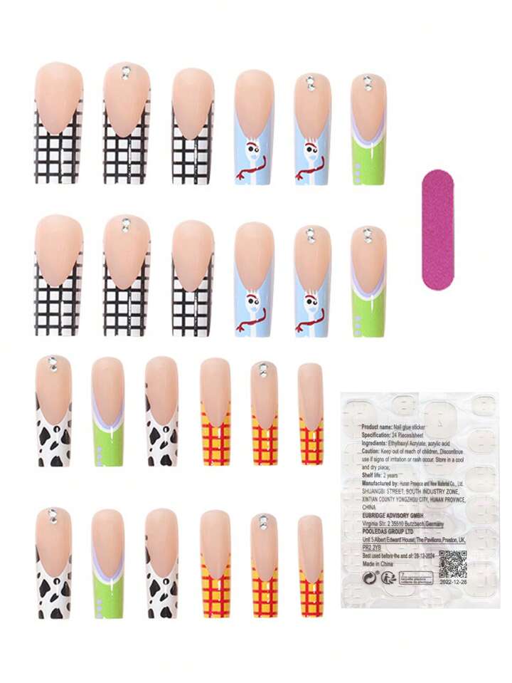 Kawaii 24 piezas largo ataúd de cuadros & con patrón de vaca Uña postiza Kit