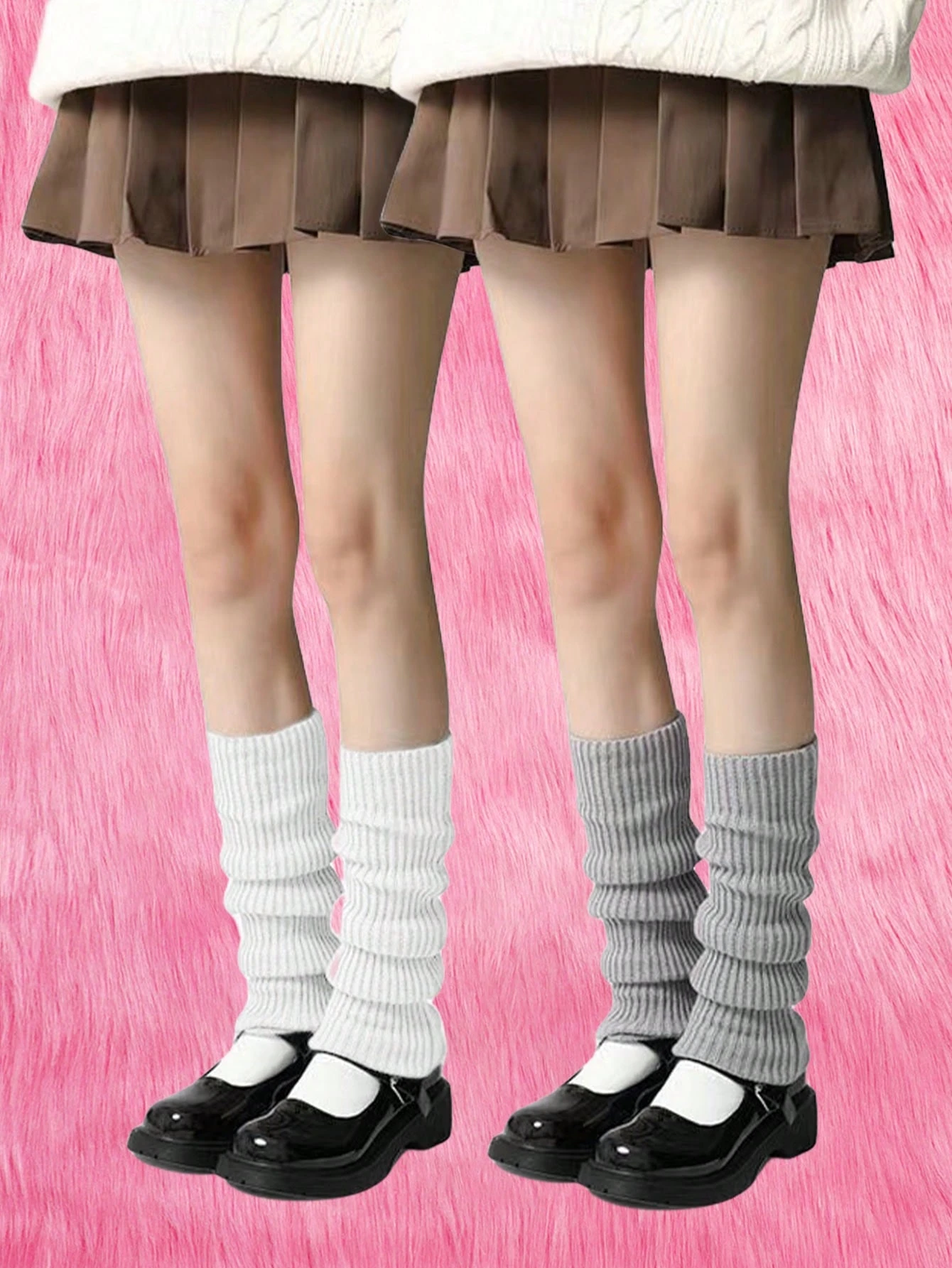 Kawaii 2 Pares De Calentadores De Piernas Tejidos Lisos