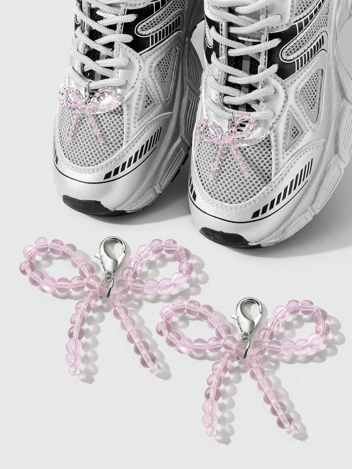 Kawaii 2 piezas Delicado y dulce versátil minimalista moda hecho a mano cuentas rosa falso cristal lazo DIY broche de langosta, juego decorativo adecuado para mujeres, niñas, uso diario, regalo de vacaciones
