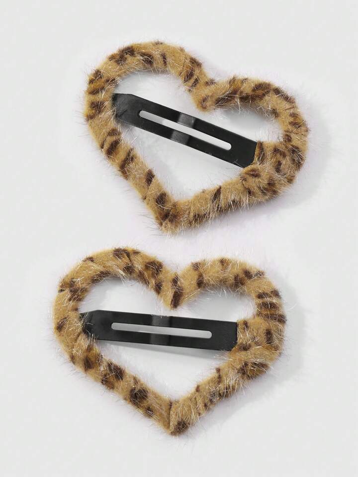 Kawaii 2 piezas de pasadores de pelo con diseño de estampado de leopardo y en forma de corazón, hechos de peluche, clips de pelo adecuados para niñas y mujeres, excelentes para uso diario y como regalos, pinzas para el cabello, hebillas para el cabello
