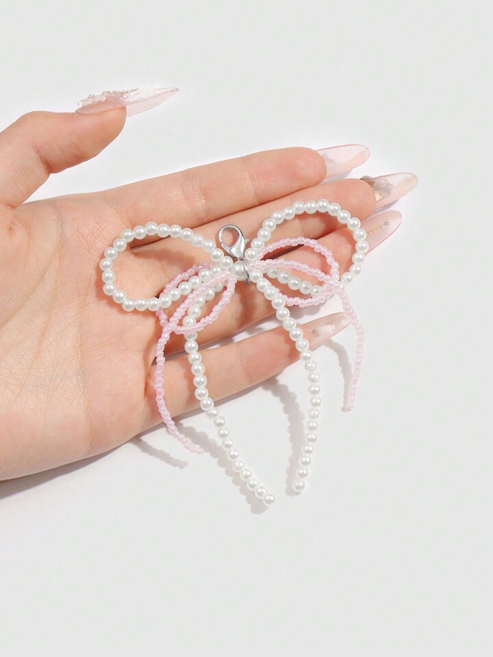 Kawaii 2 piezas Clip decorativo de zapato con doble lazo, hecho a mano de forma minimalista con perlas falsas blancas y cuentas de color rosa, estilo elegante para uso diario y como regalo para mujeres