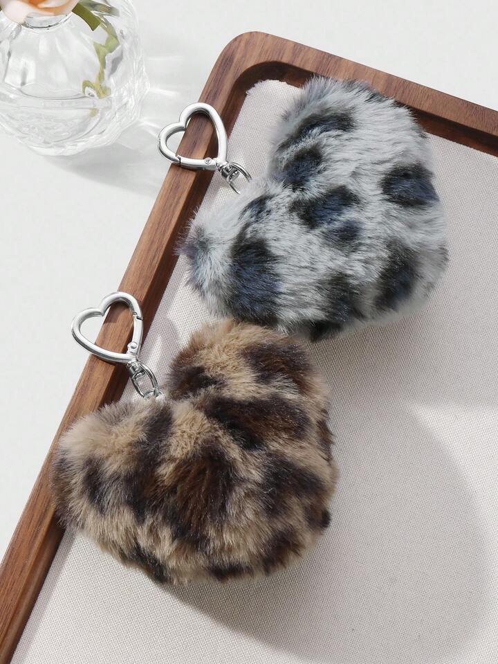 Kawaii Set de 2 combinaciones de llavero/dije de bolso con estampado de leopardo en marrón y gris, de estilo retro y elegante, ideal para parejas, hermanas, uso diario y regalos festivos