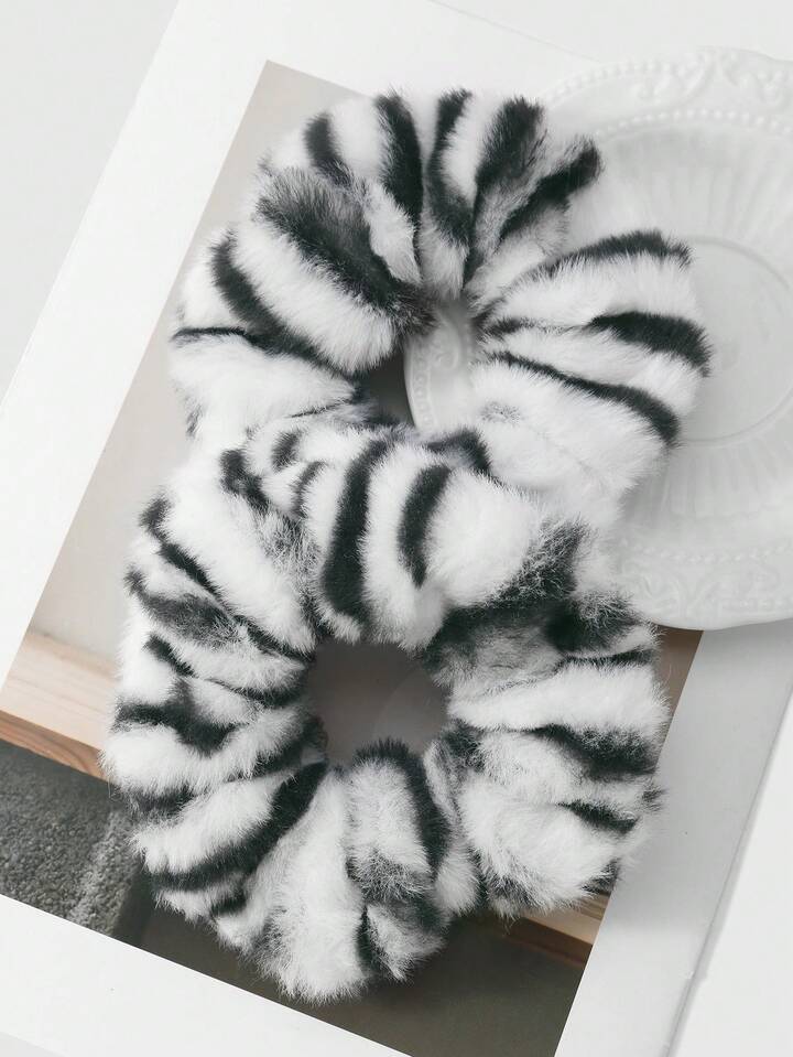 Kawaii Set de 2 scrunchies de alta calidad con estampado de leopardo en blanco y negro, de estilo retro y elegante. Combinación versátil adecuada para mujeres, para uso diario o como regalo