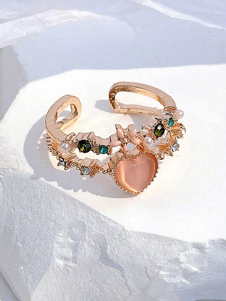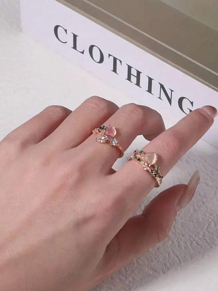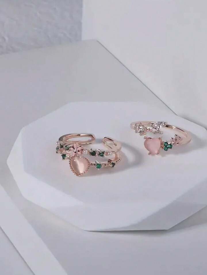 Kawaii 2 Piezas Anillo Ajustable Romántico Con Forma De Corazón Abierto, Regalo De San Valentín