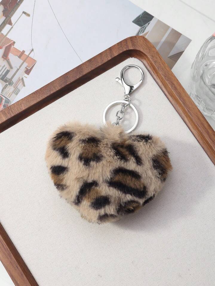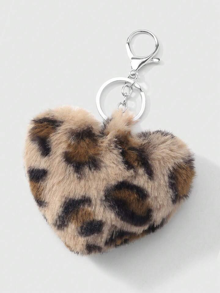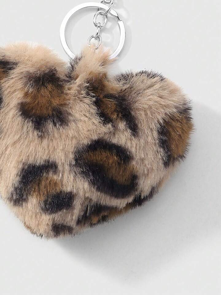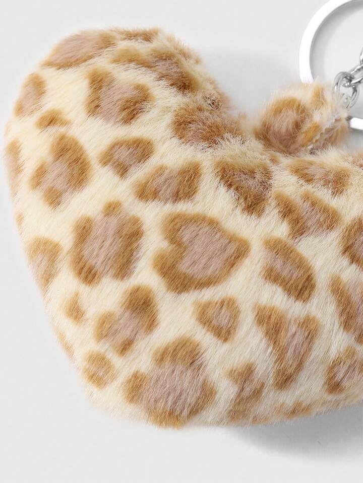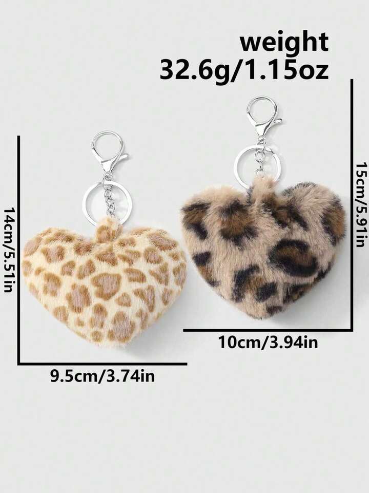 Kawaii Set de 2 llaveros con forma de leopardo y corazón de piel sintética, accesorios de moda adecuados para parejas, hermanas, uso diario, regalo para fiestas
