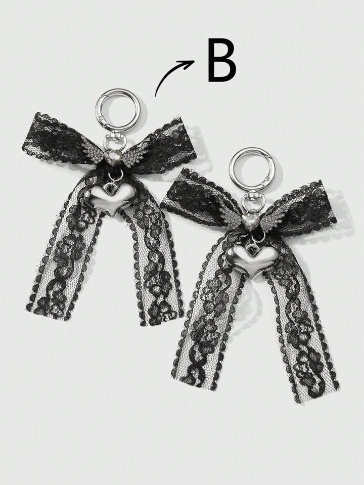 Kawaii Set de 2 decoraciones para zapatos y botas de estilo gótico elegante, hechas a mano con cuentas de plata CCB, cuerda roja, lazo de encaje negro y corazón de cristal, adecuado para uso diario de mujeres y niñas, regalos para fiestas