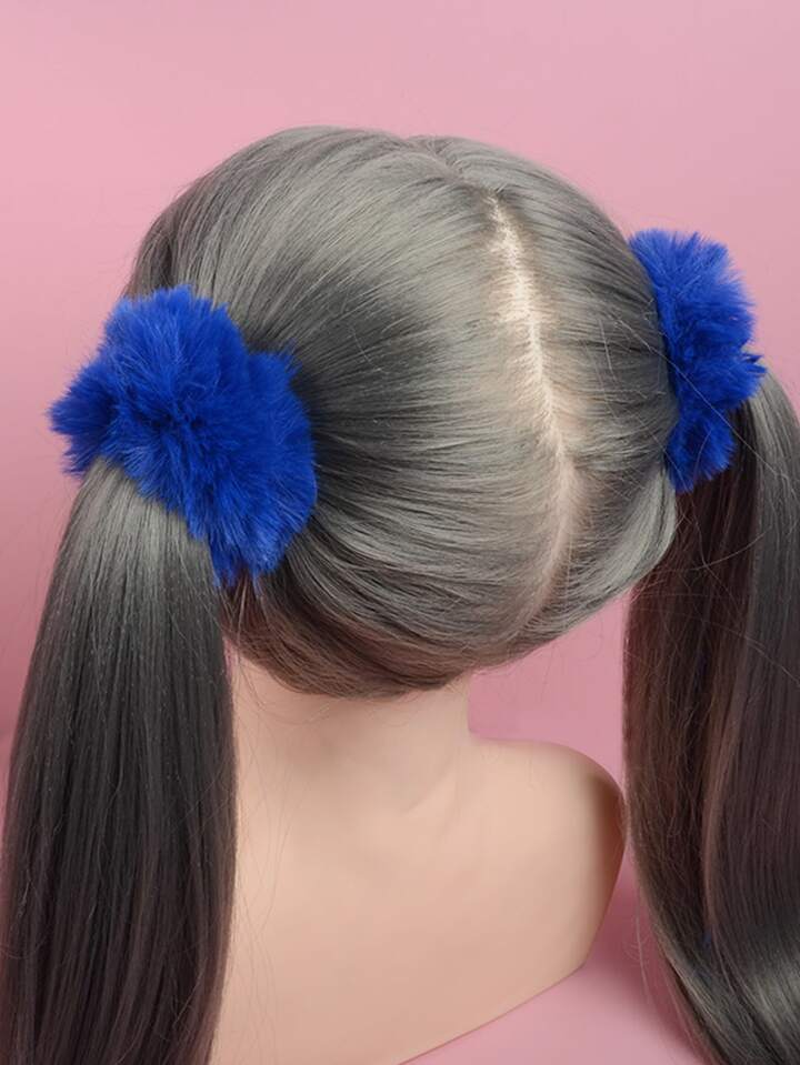 Kawaii 2 piezas de Lazos de pelo esponjosos y sólidos, lindos Scrunchies de San Valentín
