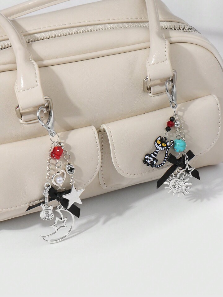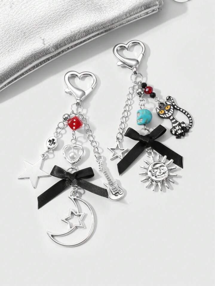 Kawaii Set de 2 piezas de combinación de colgantes de cadena de plata con estilo gótico de moda Y2K que incluye encantos de corazón, estrella, gato, calavera, cruz, mariposa, sonrisa, sol, luna, ideal para niñas, amigos, parejas, uso diario o regalos