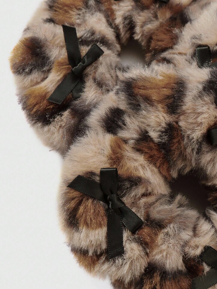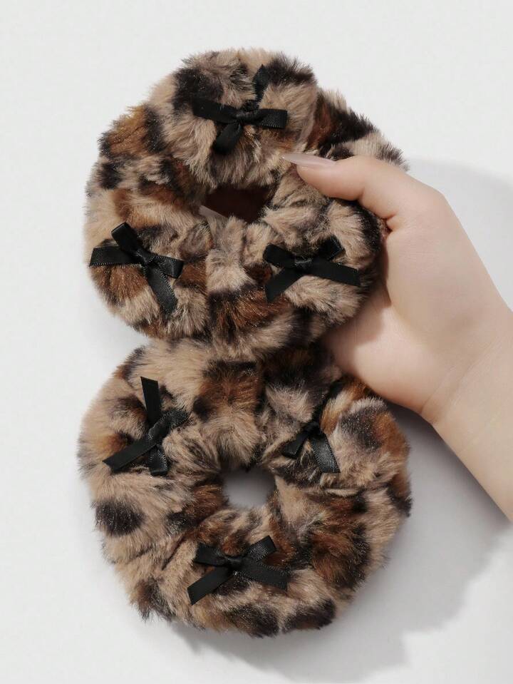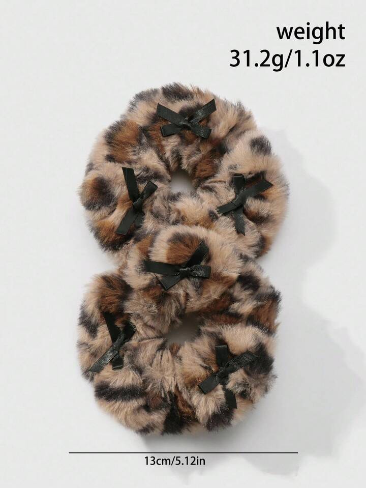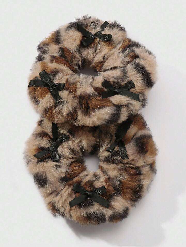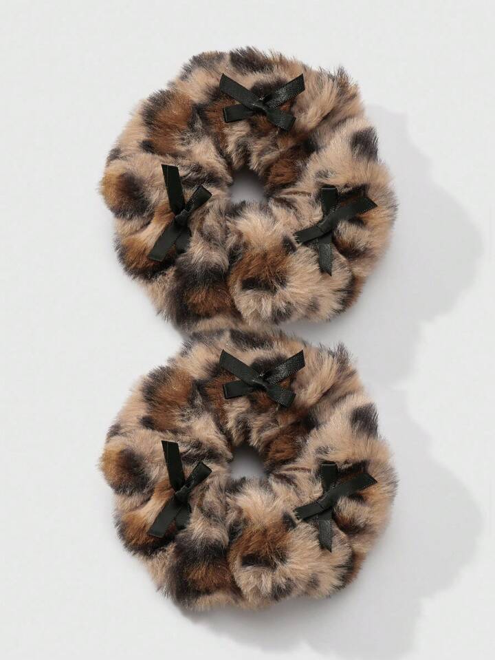 Kawaii 2 piezas Scrunchies con estampado de leopardo y lazo, estilo retro Y2K, set de combinación elegante apto para uso diario de mujeres y niñas, y como regalo para ocasiones festivas