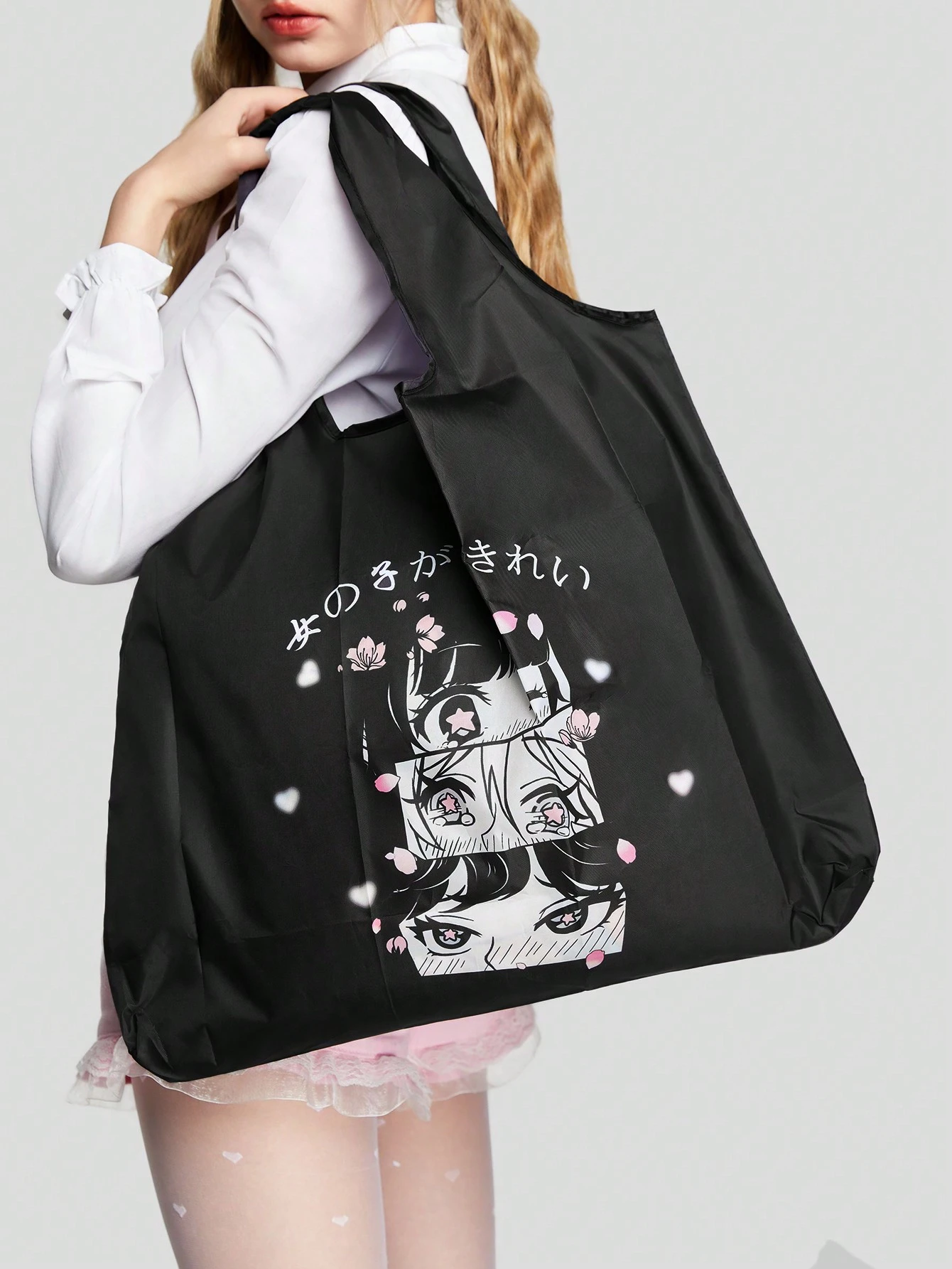 Kawaii 2 Piezas Conjunto De Bolsa De Mano Plegable De Gran Capacidad Con Diseños De Dibujos Animados, Para Compras