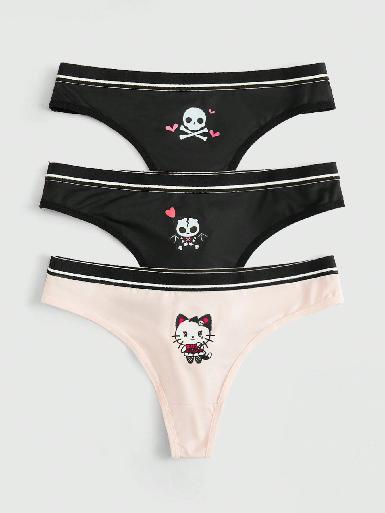 Kawaii Conjunto De 3 Tangas De Dibujos Animados Con Contraste De Gráficos Y Ribetes