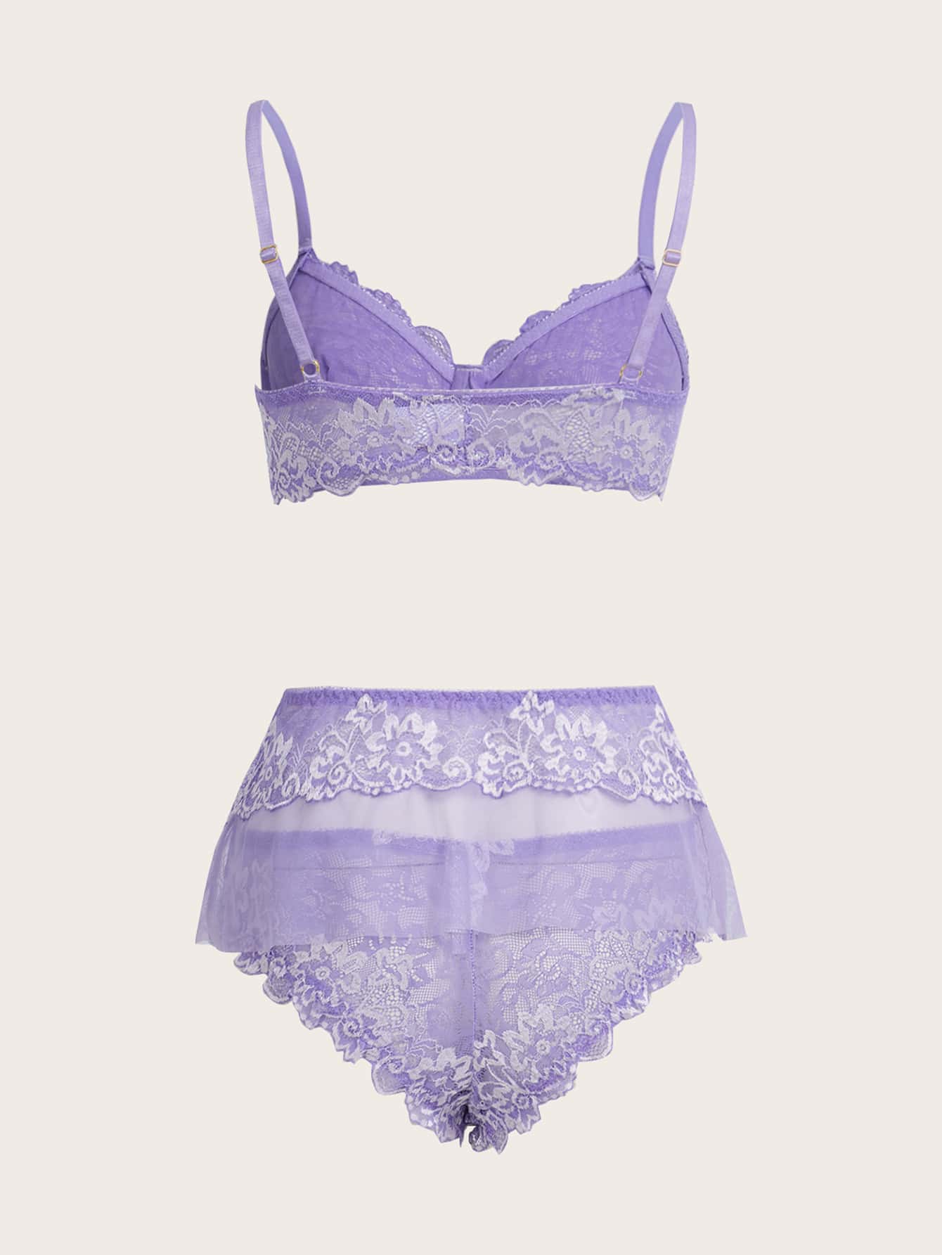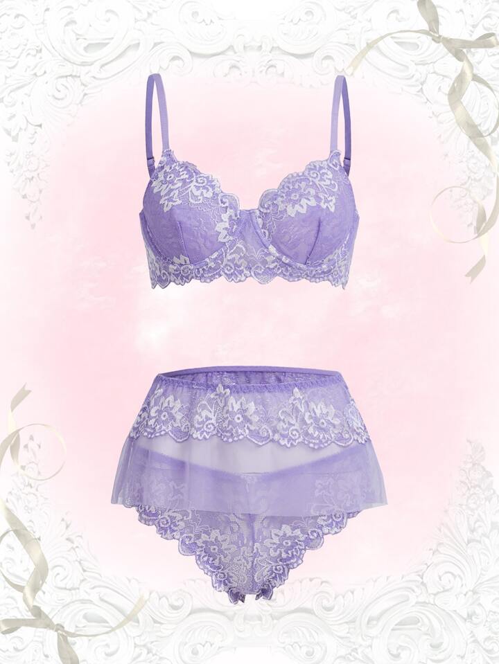 Kawaii 3 piezas Set de lencería con encaje floral con aro