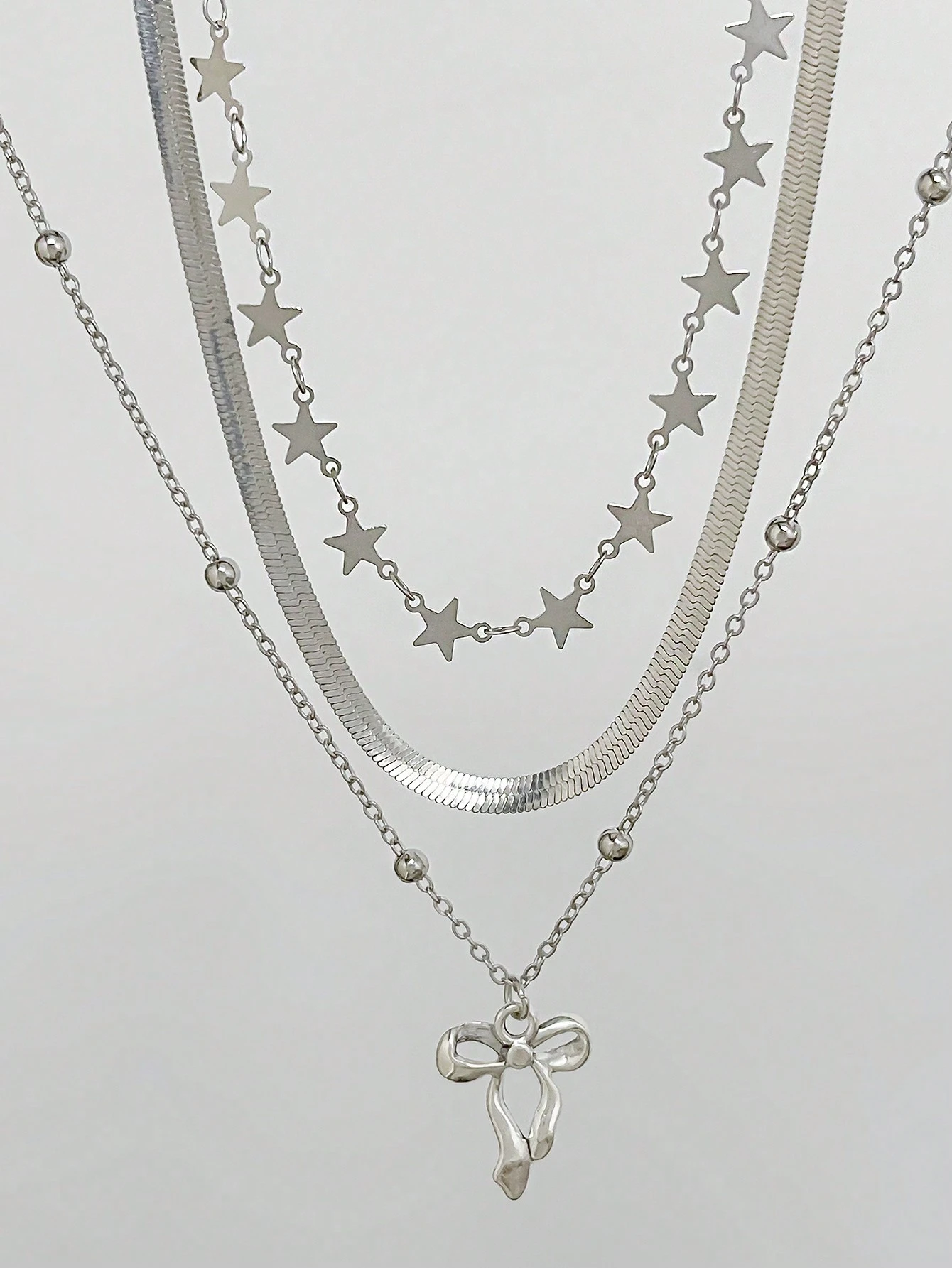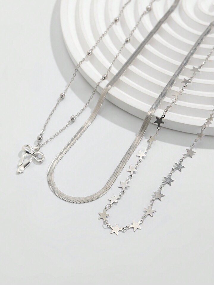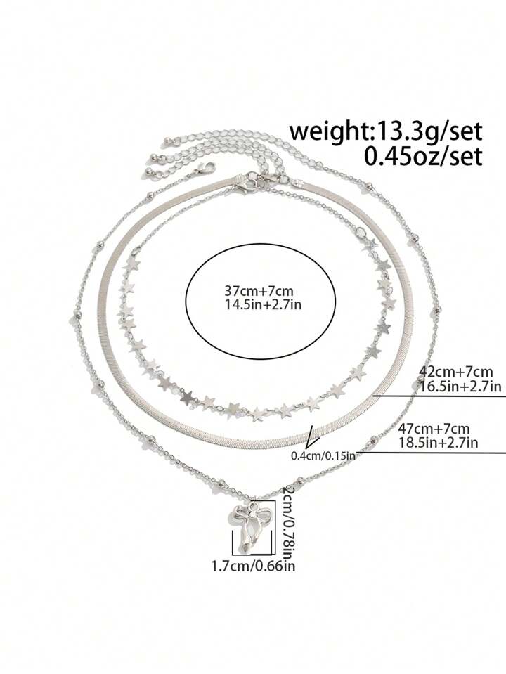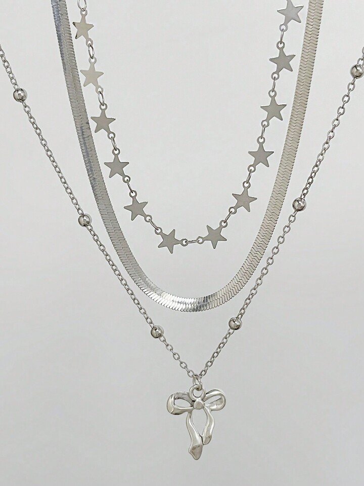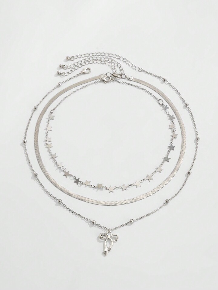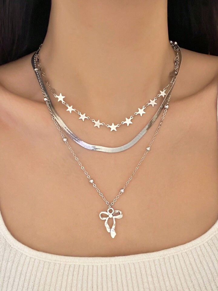 Kawaii Juego de 3 collares con colgantes de lazo y estrella de moda y lindos