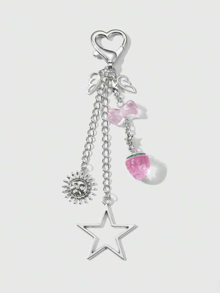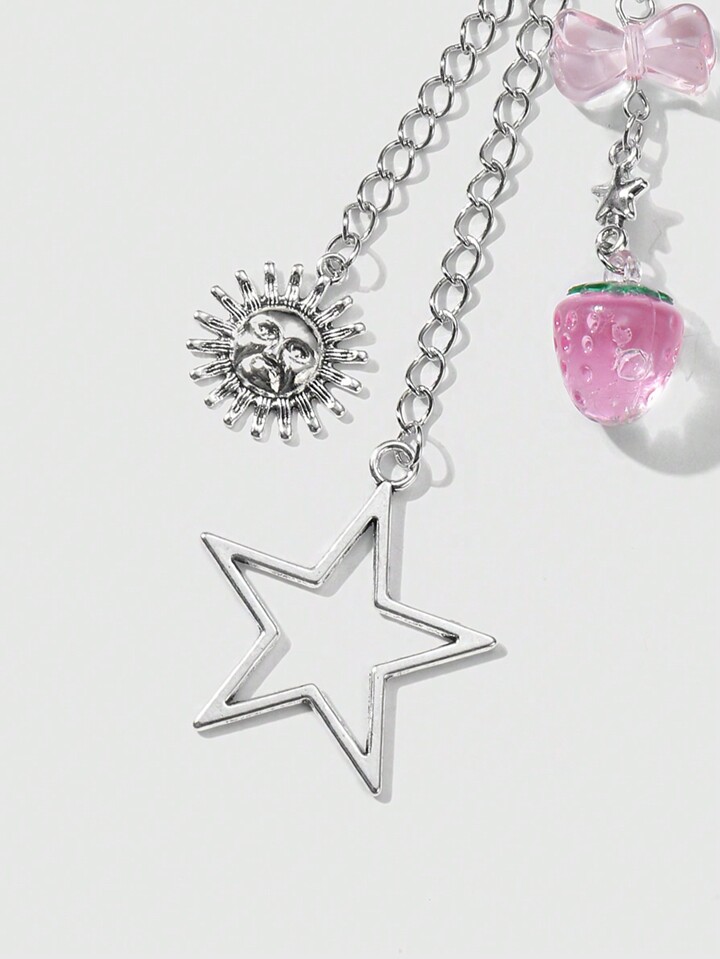 Kawaii Set de 3 llaveros de acrílico con dijes de estrella hueca, lazo de fresa, estrella, corazón, llama, cruz, sol, luna, y cabeza de conejo, de alta calidad y diseño versátil y lindo, adecuado como regalo para amigas, hermanas o festivales