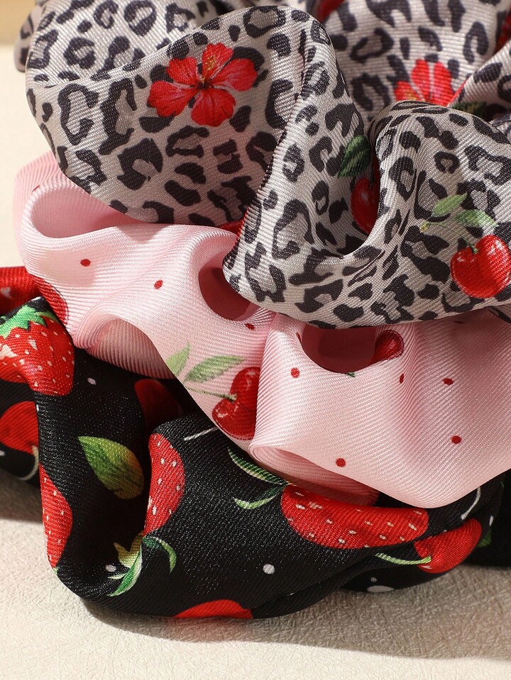 Kawaii 4 piezas Scrunchies para el cabello de niñas con estampado de cereza, dulces y adorables, versátiles para uso diario y al aire libre, accesorios para el cabello de mujer