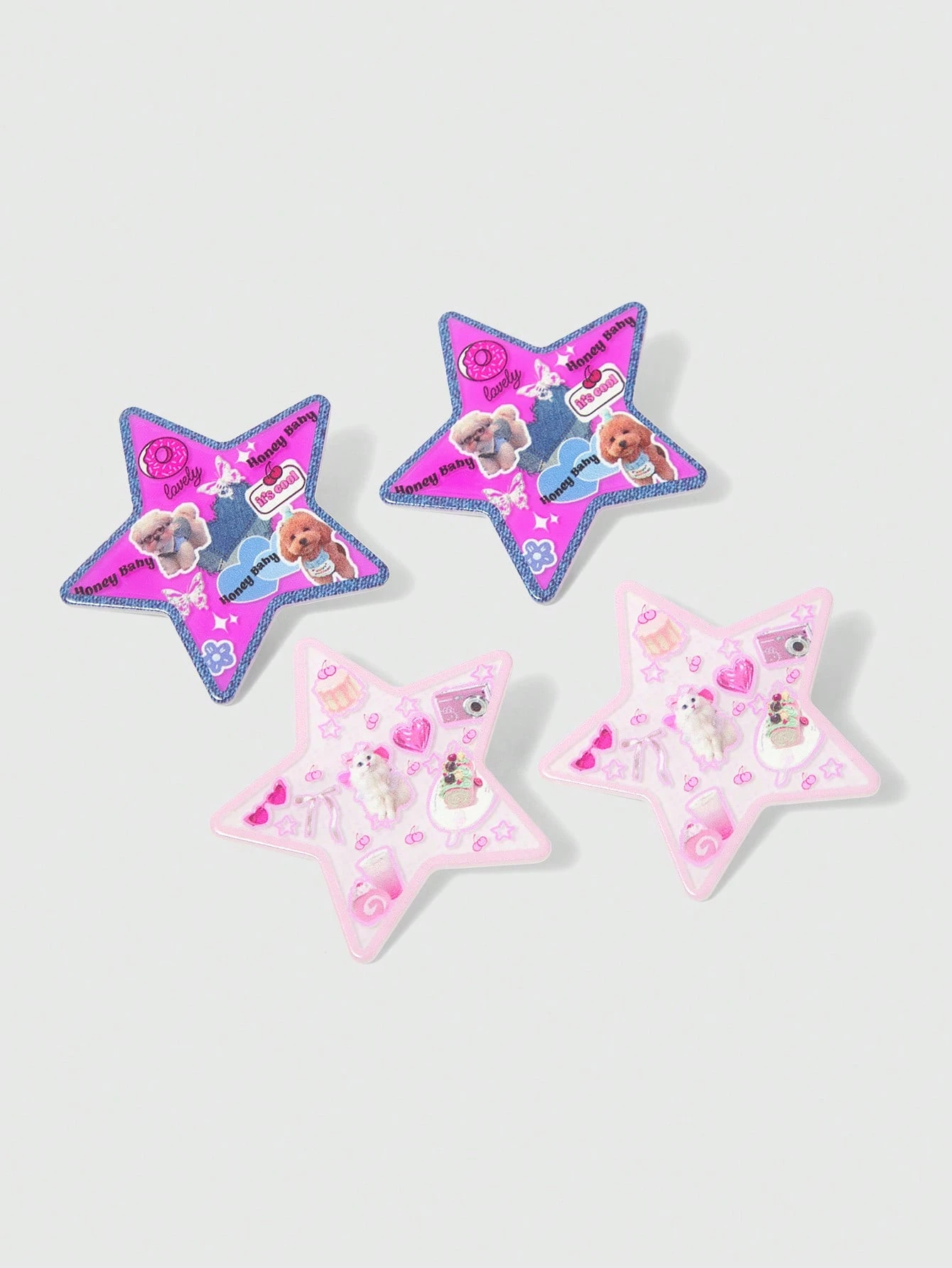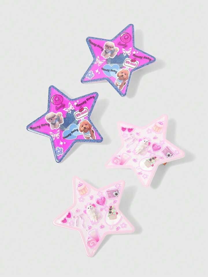 Kawaii 4 piezas de pinzas para el pelo con diseño de estrellas lindas aleatorias, pinzas de cocodrilo con impresión de gatitos y perros Y2K, accesorios creativos y coloridos para el cabello como pinzas y barrettes