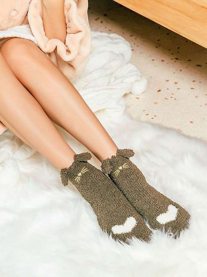 Kawaii 5 Pares De Calcetines Cortos De Coral Para Mujer Con Diseño Divertido Y Cálido