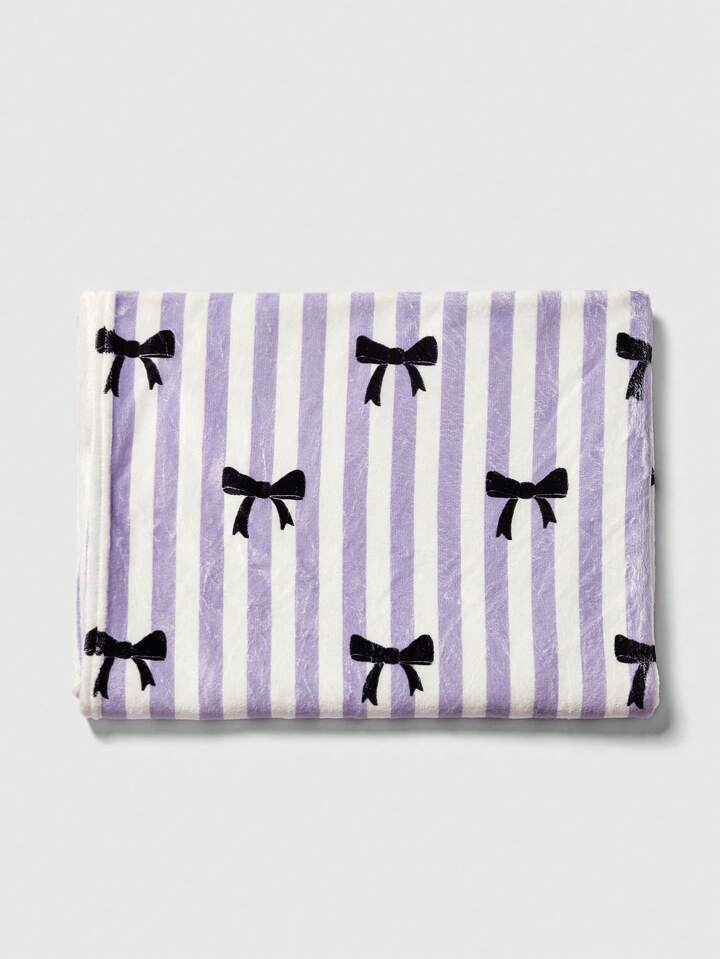 Kawaii Manta de franela con diseño de lazo de dibujos animados, cálida y portátil para la sala de estar