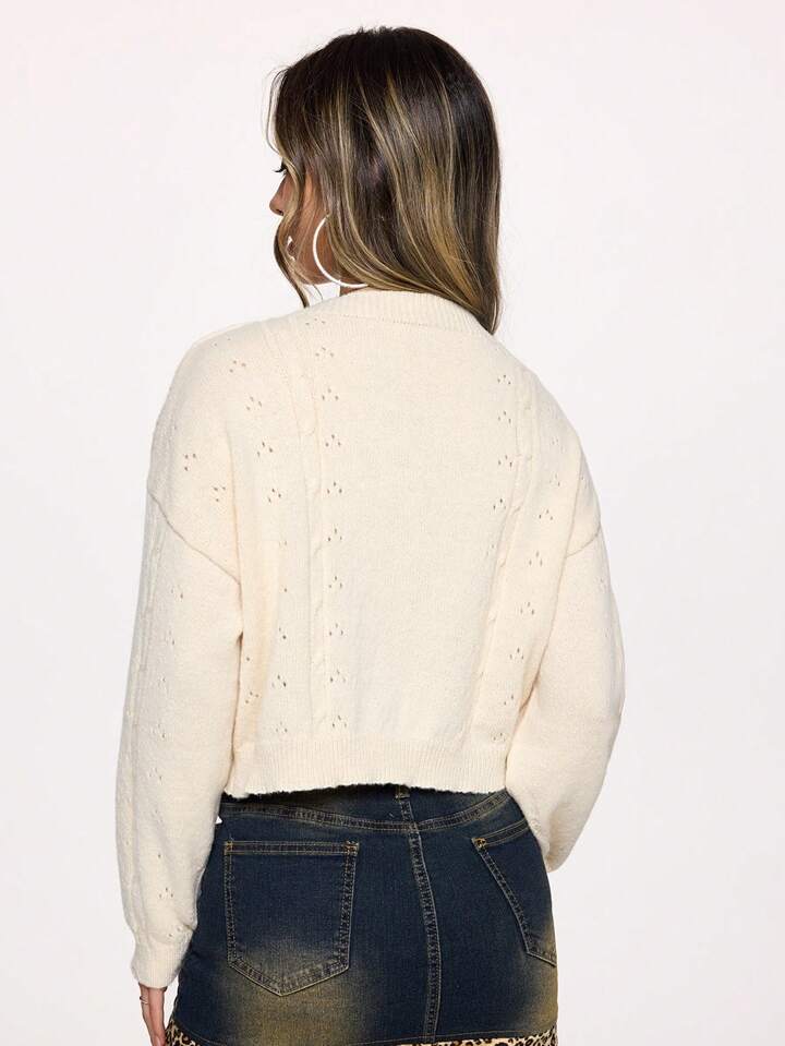 Kawaii Cárdigan con lazo en color amarillo crema estilo retro americano para mujer
