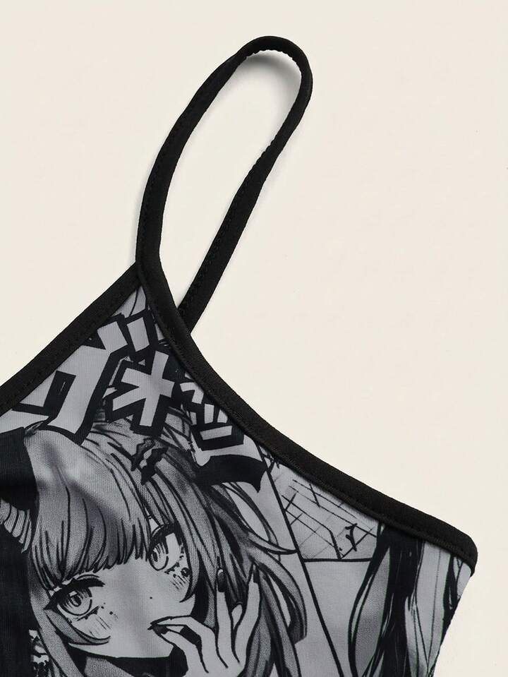 Camiseta de tirantes con estampado de chica anime kawaii para mujer