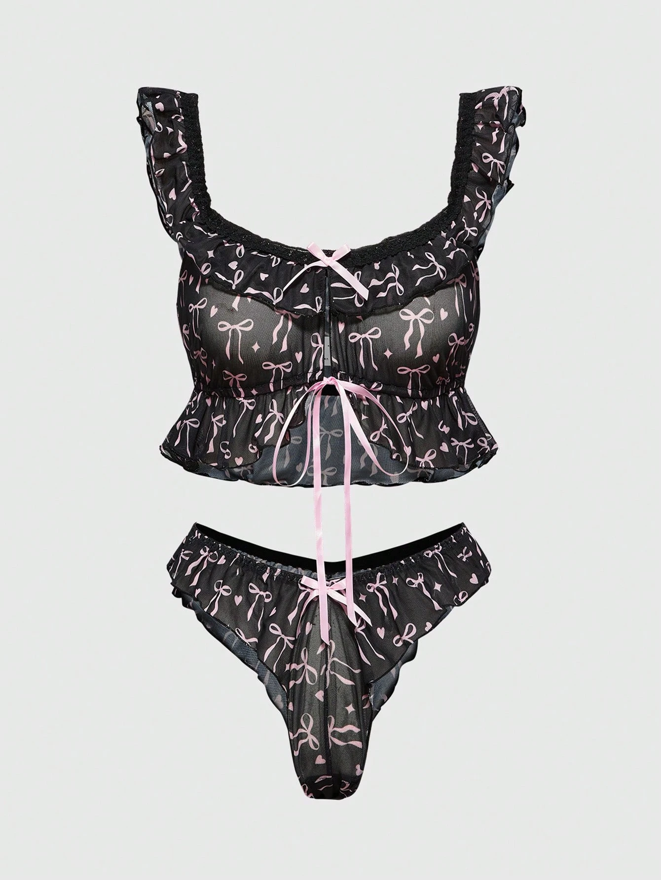 Kawaii Conjunto de lencería sexy de muñeca bebé, diseño de lazo con estampado de mariposa