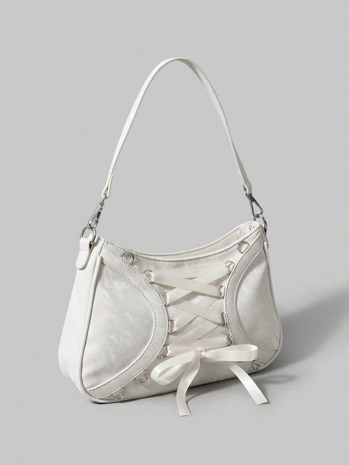 Kawaii Bolso en estilo corsé inspirado en el ballet con lazo de cinta blanca, ideal para citas del Día de San Valentín y viajes diarios