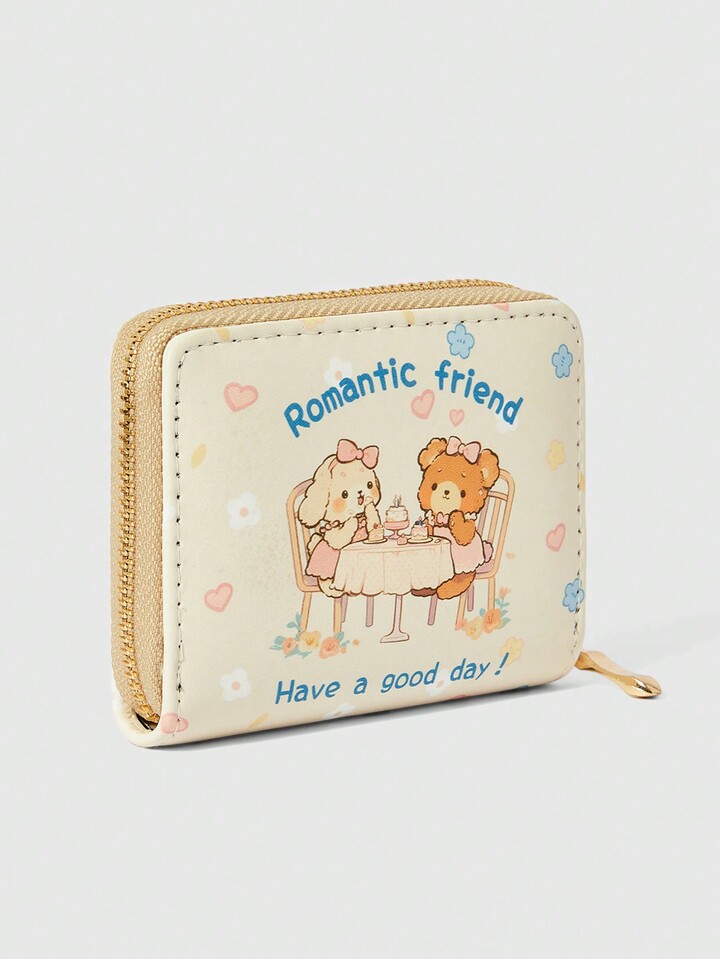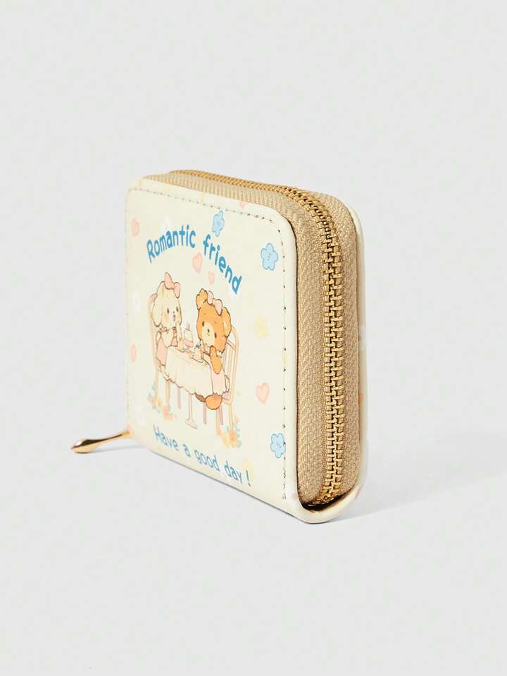 Kawaii Billetera mini de oso beige, billetera multifuncional con ranuras para tarjetas
