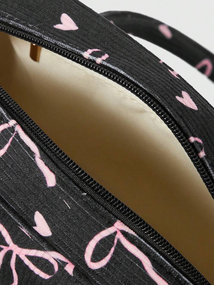 Kawaii Bolso portátil para mujer con estampado de lazos y corazones negros