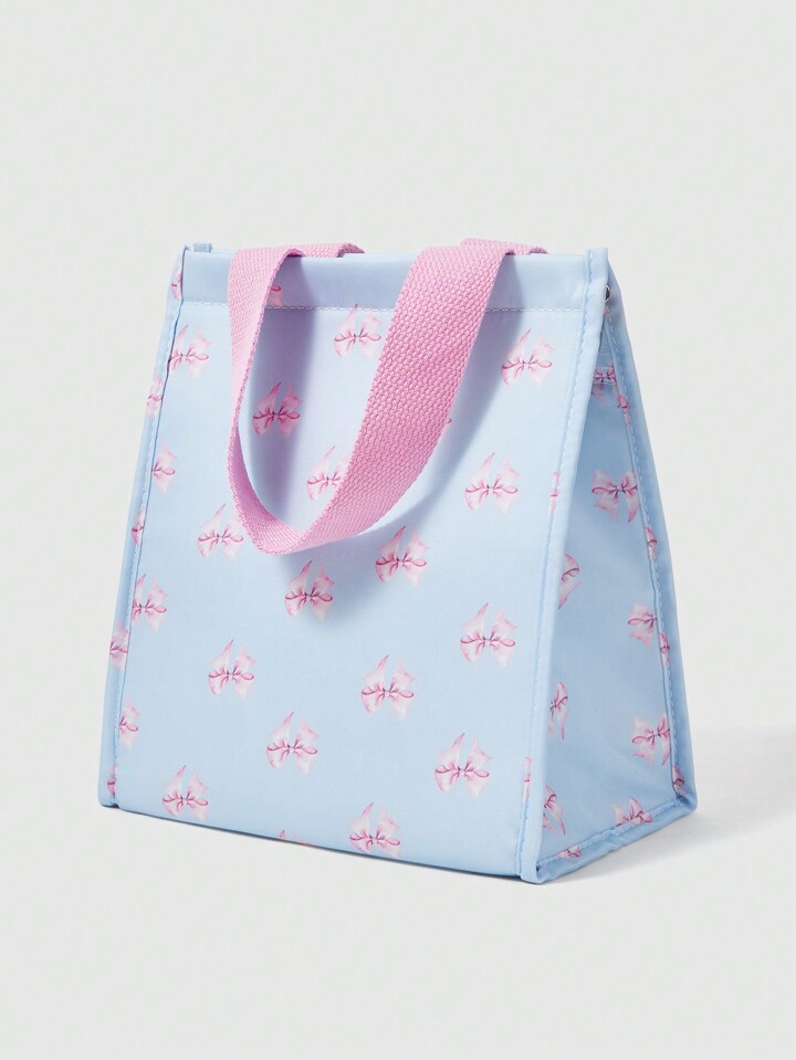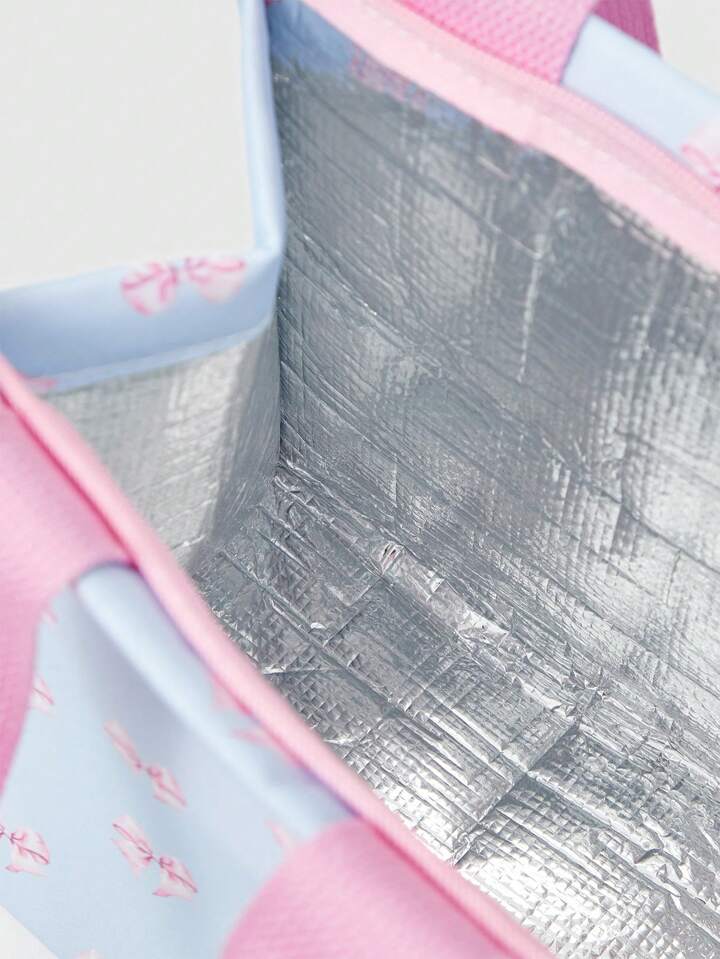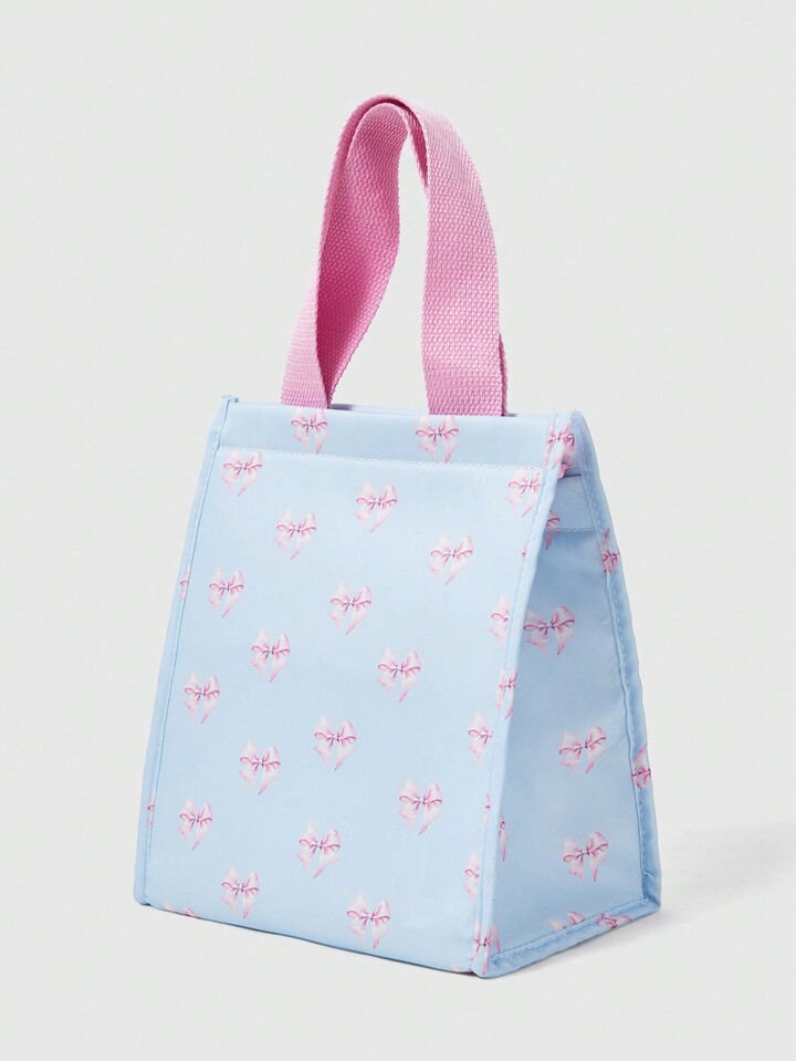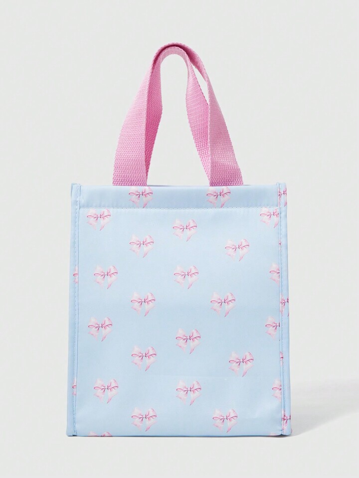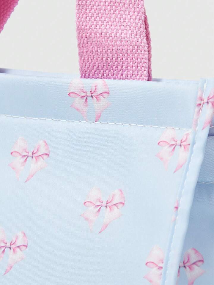 Kawaii Bolsa de almuerzo aislada con moño lindo en azul y rosa