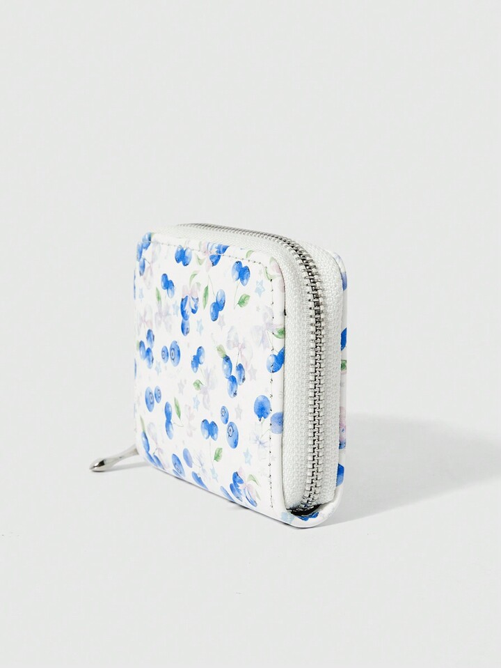Kawaii Cartera corta con estampado de arándanos todo sobre, ranuras multifuncionales para tarjetas
